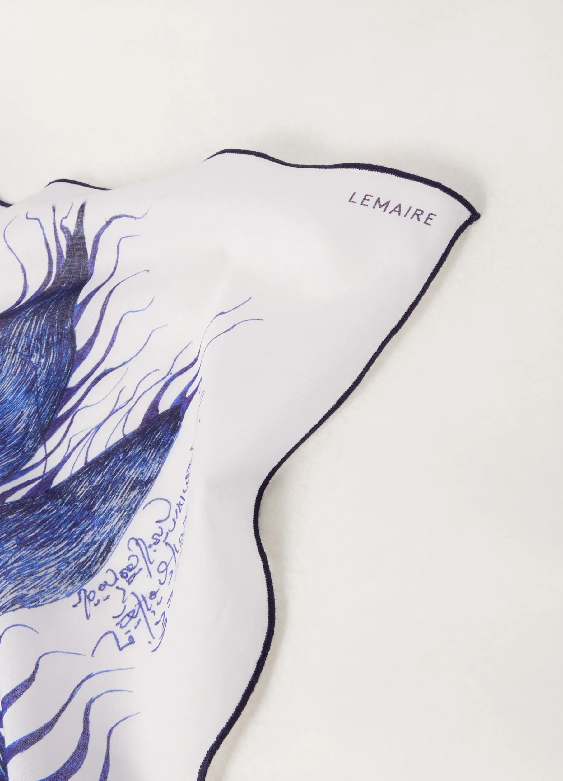 This Small Unisex Bandana Is Made Of Light Organic Cotton With A Reproduction Of An Artwork By Indonesian Artist Noviadi Angkasapura, That Has Been Printed To Scale To Respect Its Integrity. Its Border Is Asymmetrically Embroidered With Dark Blue Thread, Creating Cutout Shapes Along The Edges.
