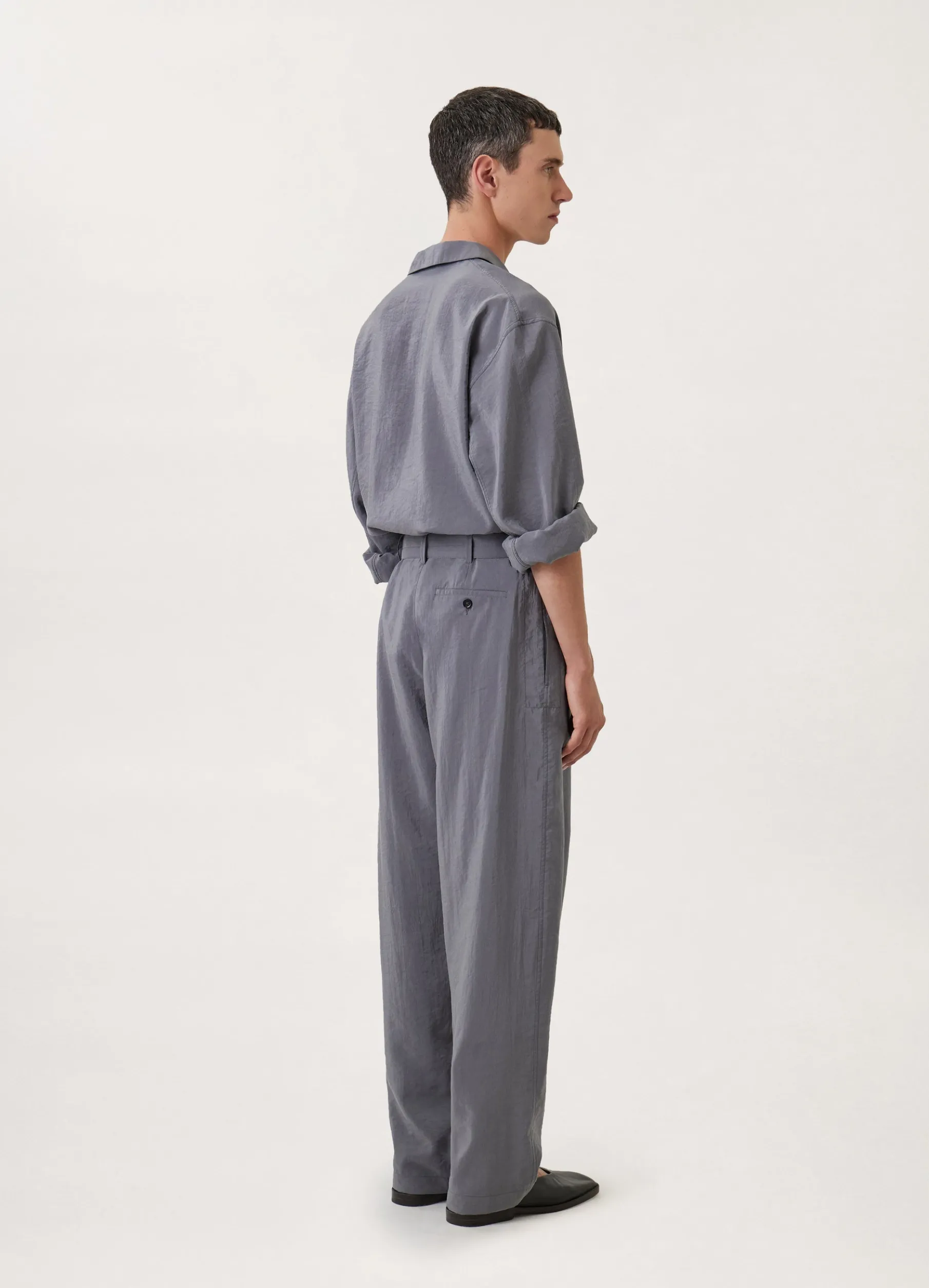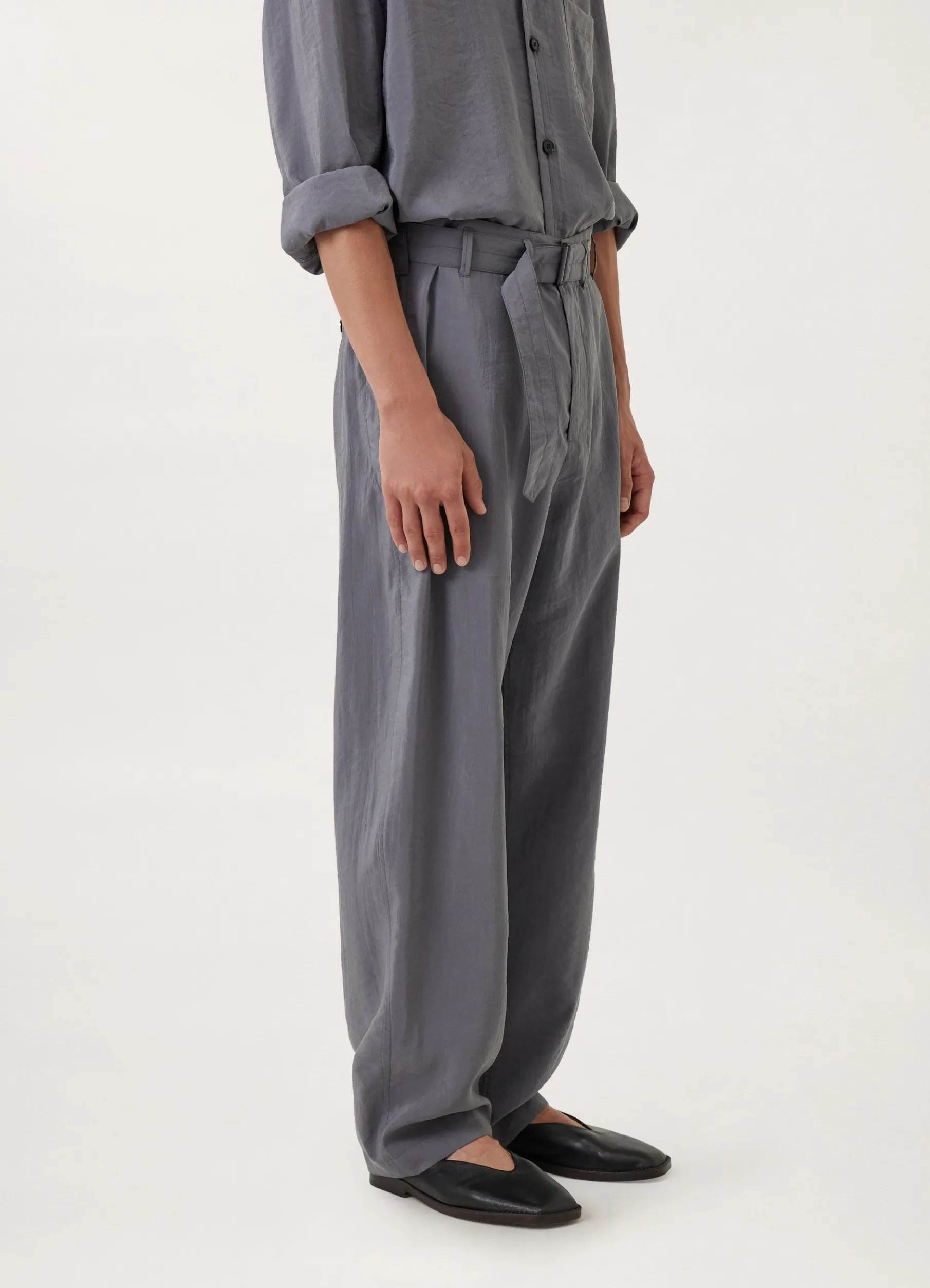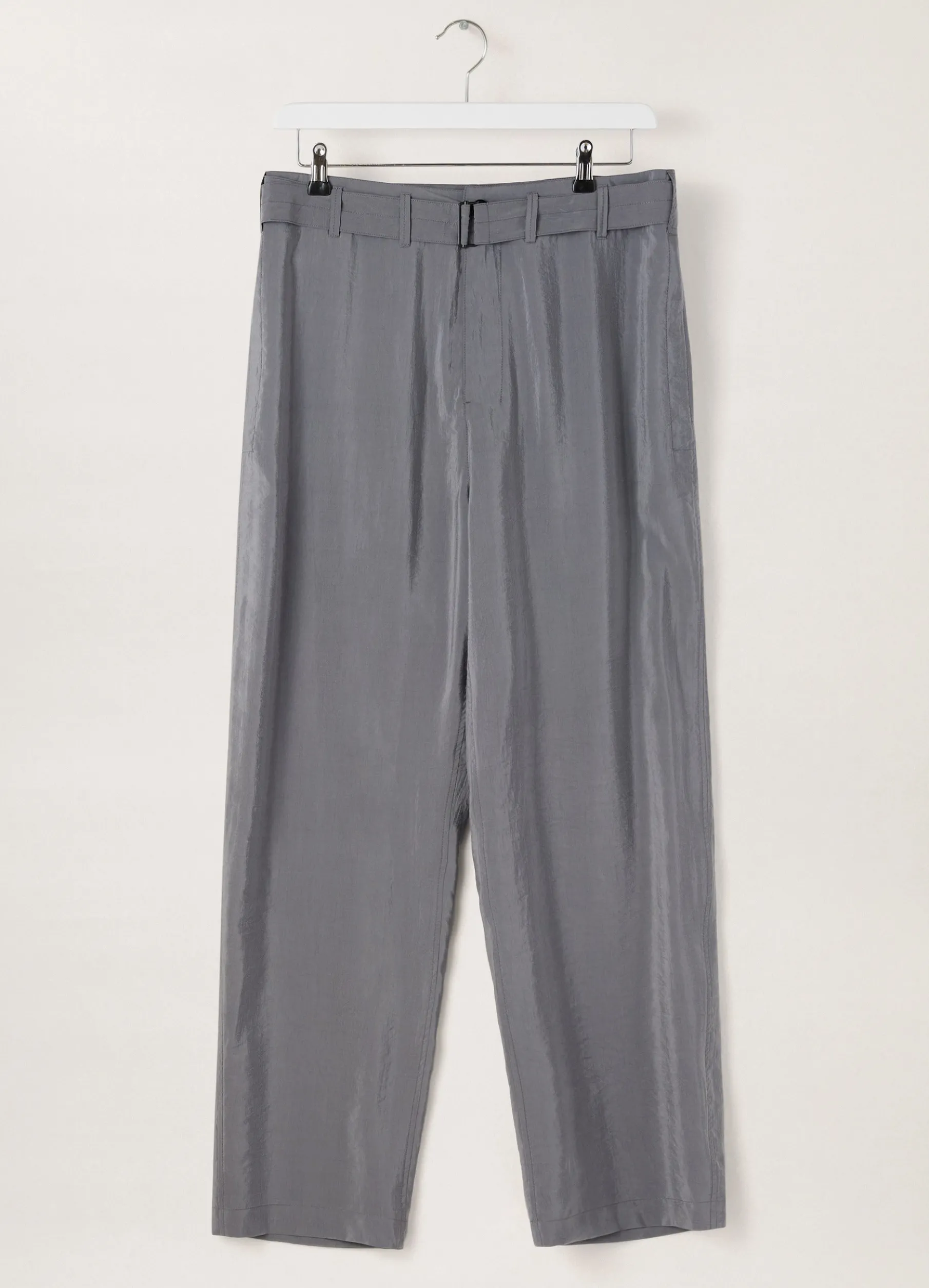 These Pants Are Made Of Dry Silk, A Classic Lemaire Fabric With A Soft Hand And Tonic Texture. They Are Midrise, With A Grownon Waist That Is Adjustable With A Removable Belt, Extending Down Into A Long, Loose Leg. Their Details Include Two Trench Pockets On Either Side And A Buttoned Welt Pocket On The Back.