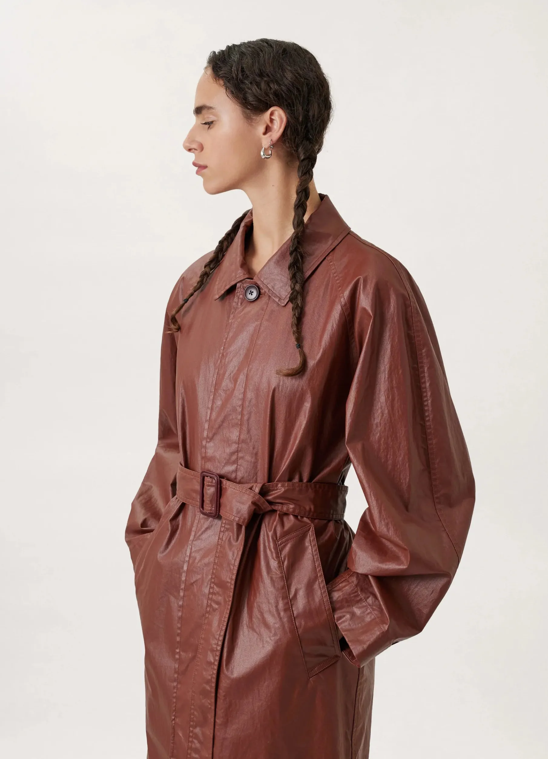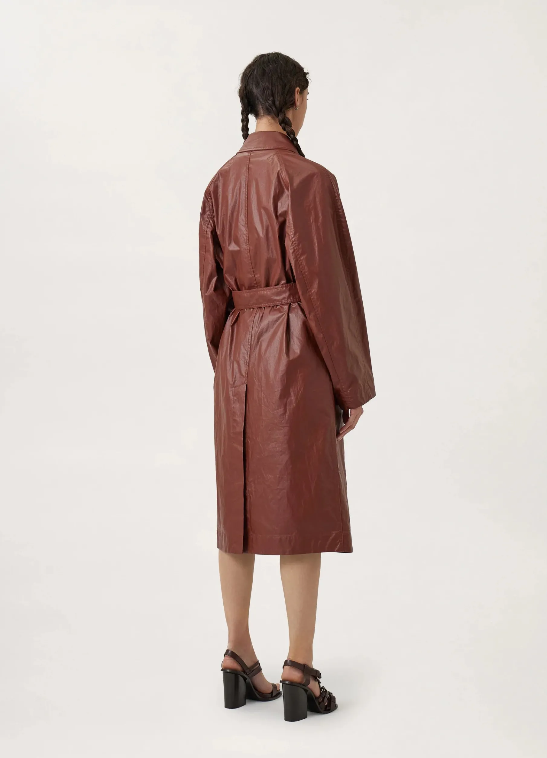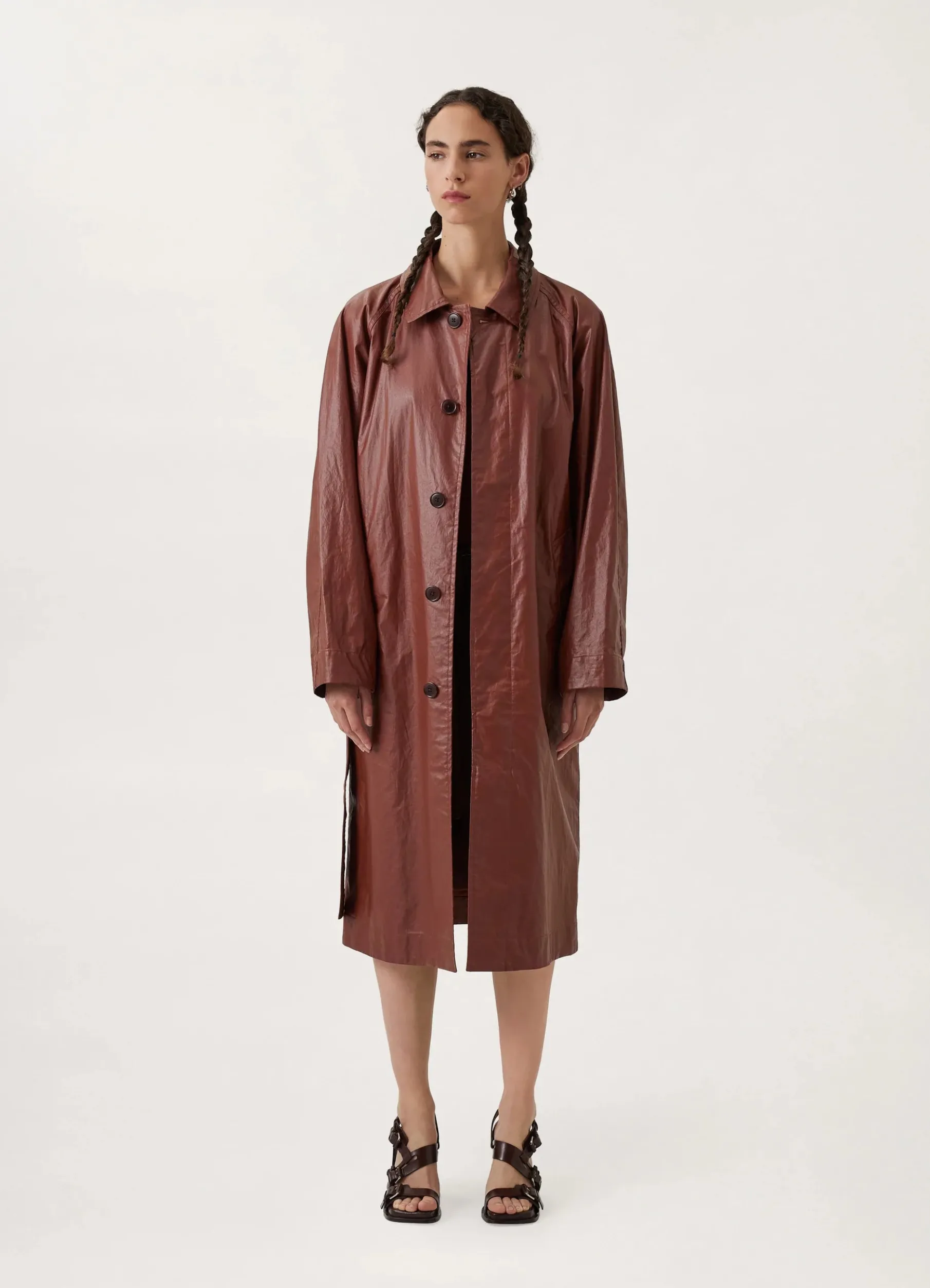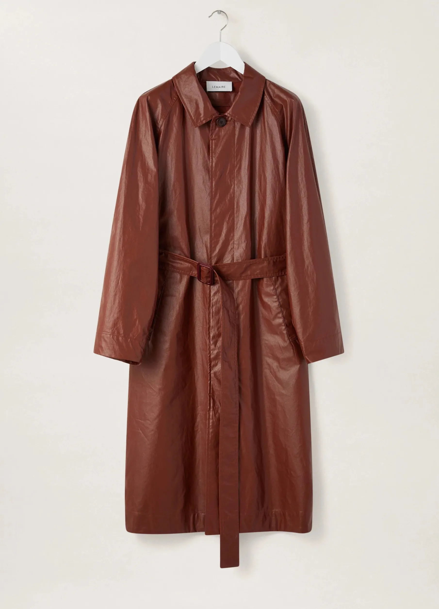This Raincoat Is Made Of A Technical Cotton That Is Coated To Be Waterrepellent, With A Sleek Finish. This Unlined Coat Has A Straight Fit, With A Classic Collar, Raglan Sleeves And A Concealed Button Placket. Its Utility Finishings Include Trench Pockets, A Removable Belt With A Leathercovered Buckle And A Locker Loop Inside The Collar To Hang It To Dry.