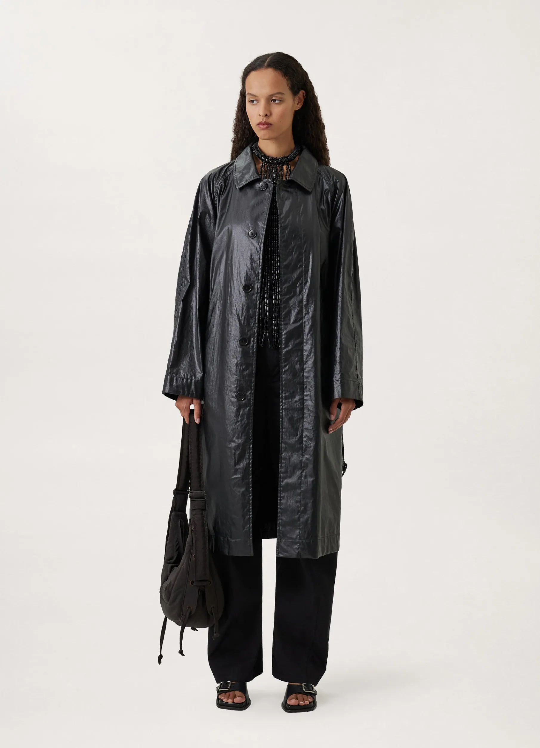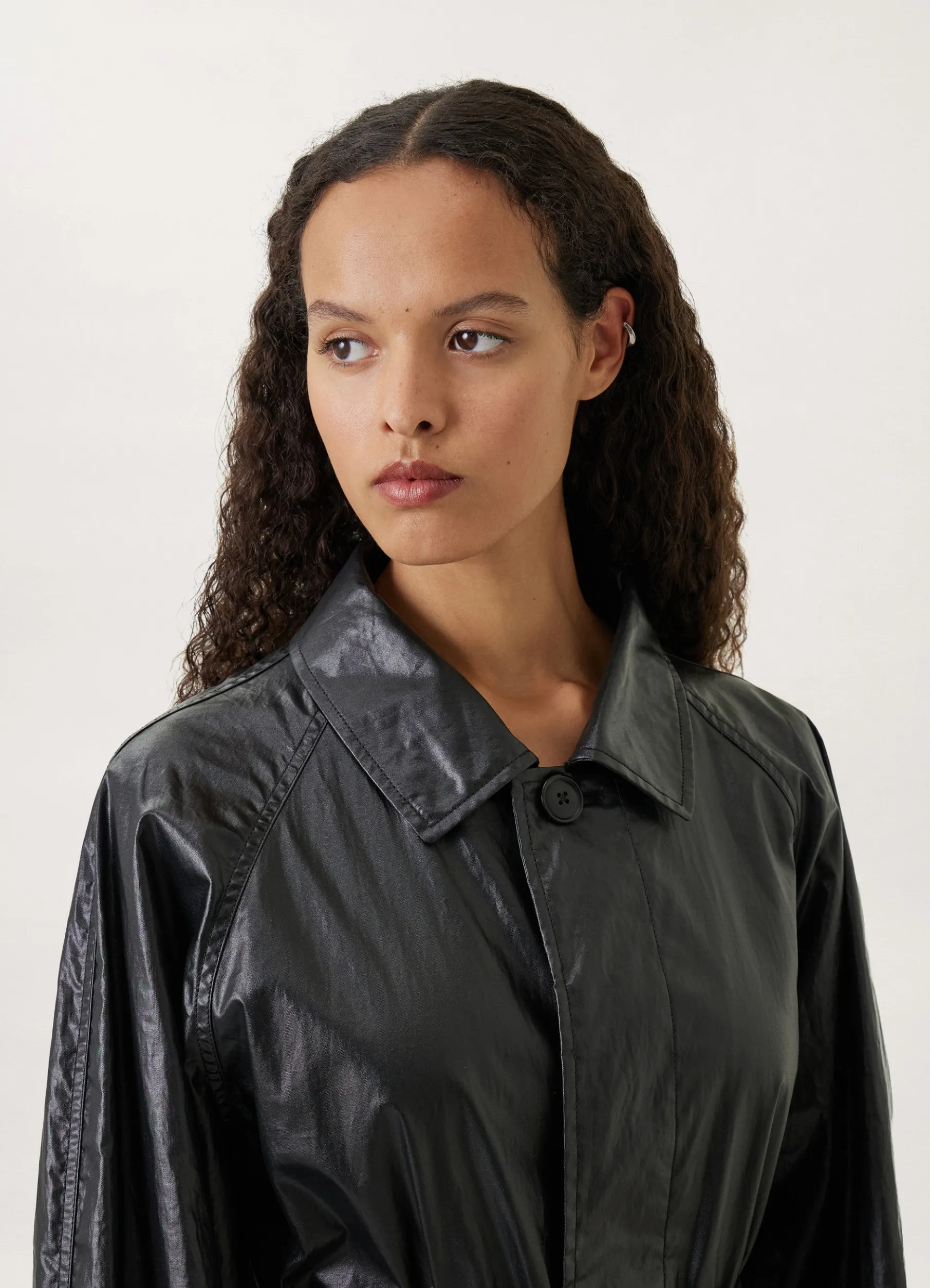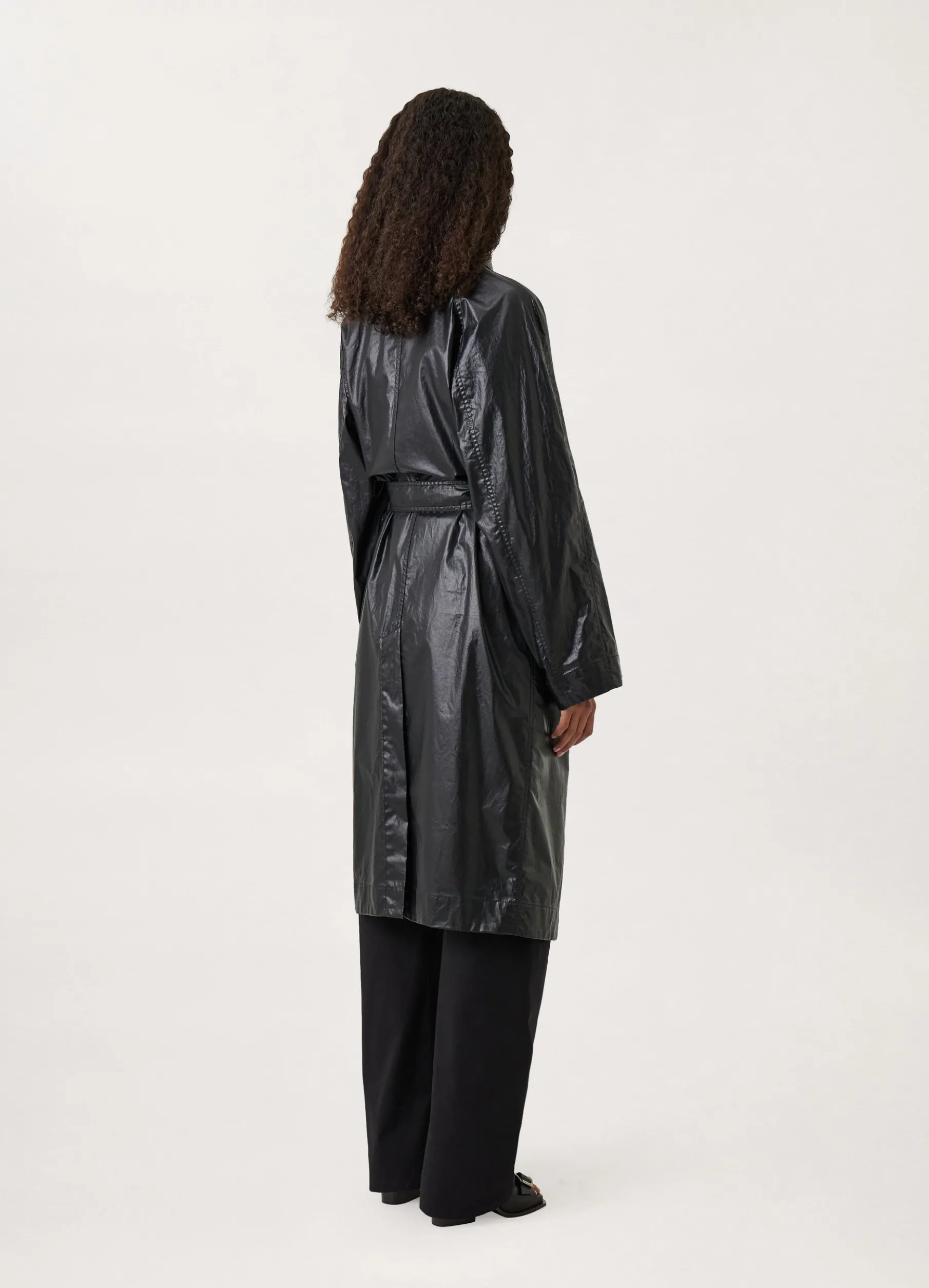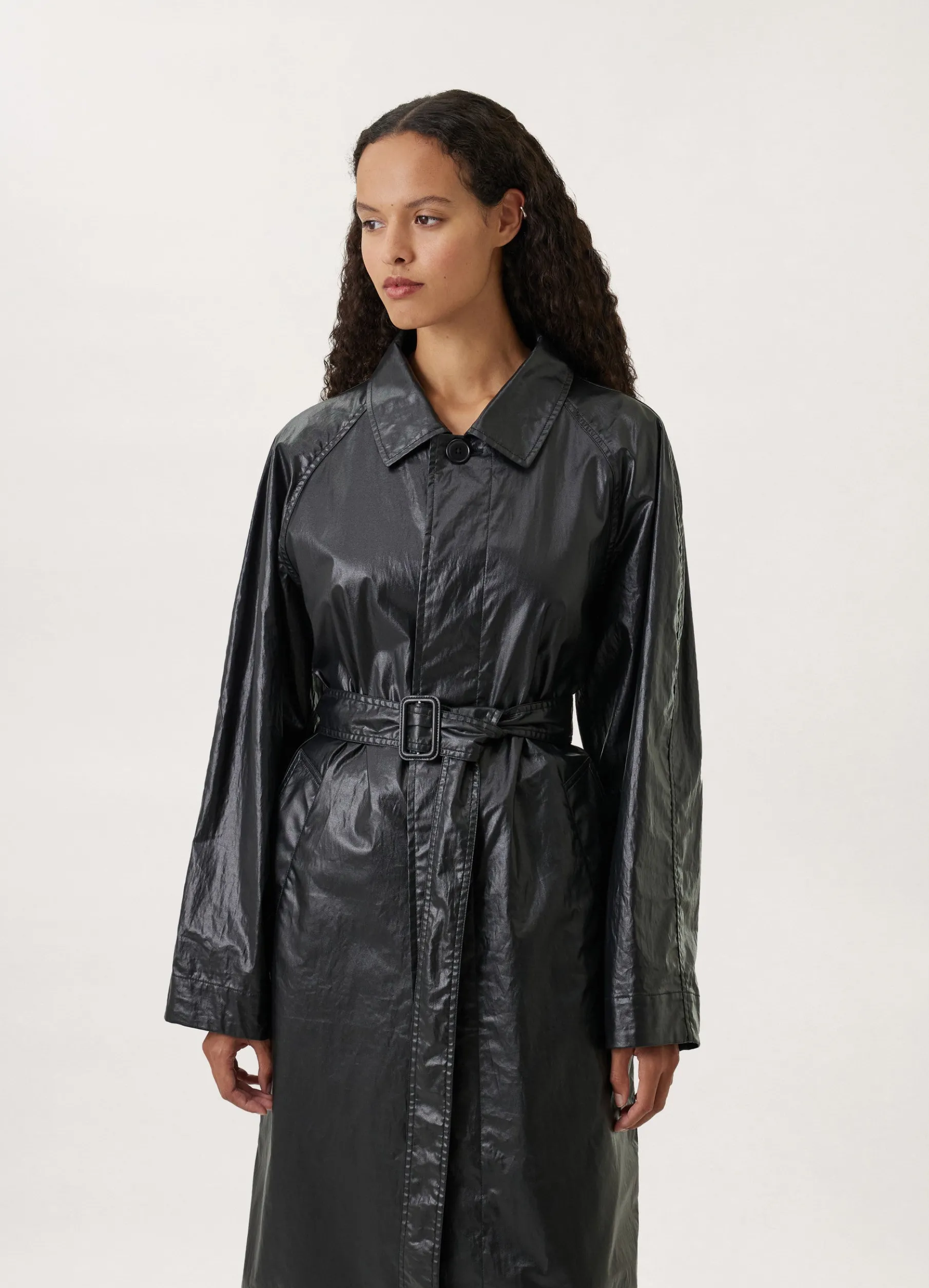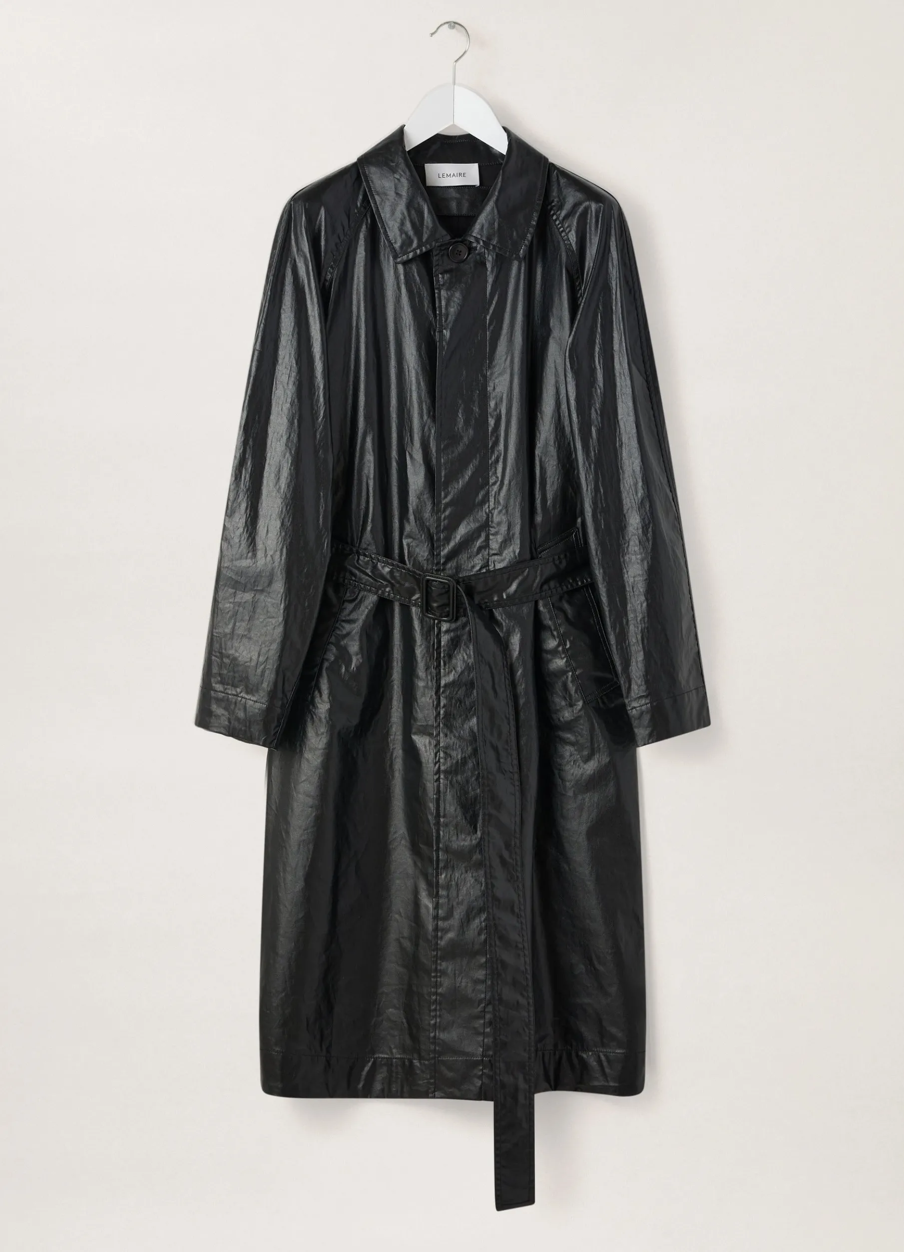 This Raincoat Is Made Of A Technical Cotton That Is Coated To Be Waterrepellent, With A Sleek Finish. This Unlined Coat Has A Straight Fit, With A Classic Collar, Raglan Sleeves And A Concealed Button Placket. Its Utility Finishings Include Trench Pockets, A Removable Belt With A Leathercovered Buckle And A Locker Loop Inside The Collar To Hang It To Dry.