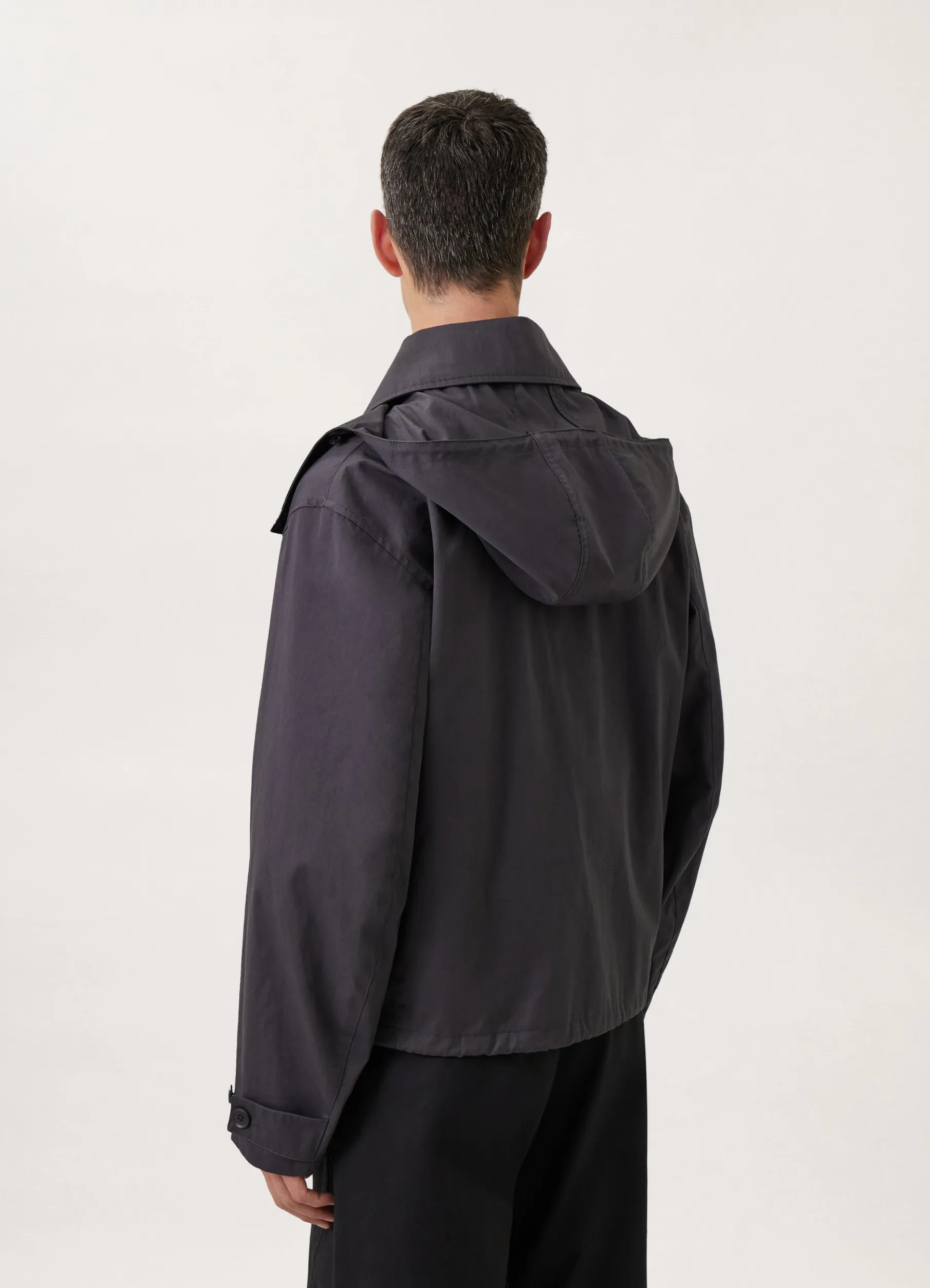 This Unisex Blouson Is Made Of Compact Cotton, Woven Into A Waterrepellent Twill That Is Soft And Malleable. It Has A Boxy Fit With A Convertible Collar, Complete With A Grownon Button Tab. Its Asymmetric Constructions Buttons Up The Front To Conceal The Metal Zipper. It Features A Drawstring Hood And Hem; Adjustable Sleeve Tabs And Angled Zipped Pockets Finish Its Utility Details.