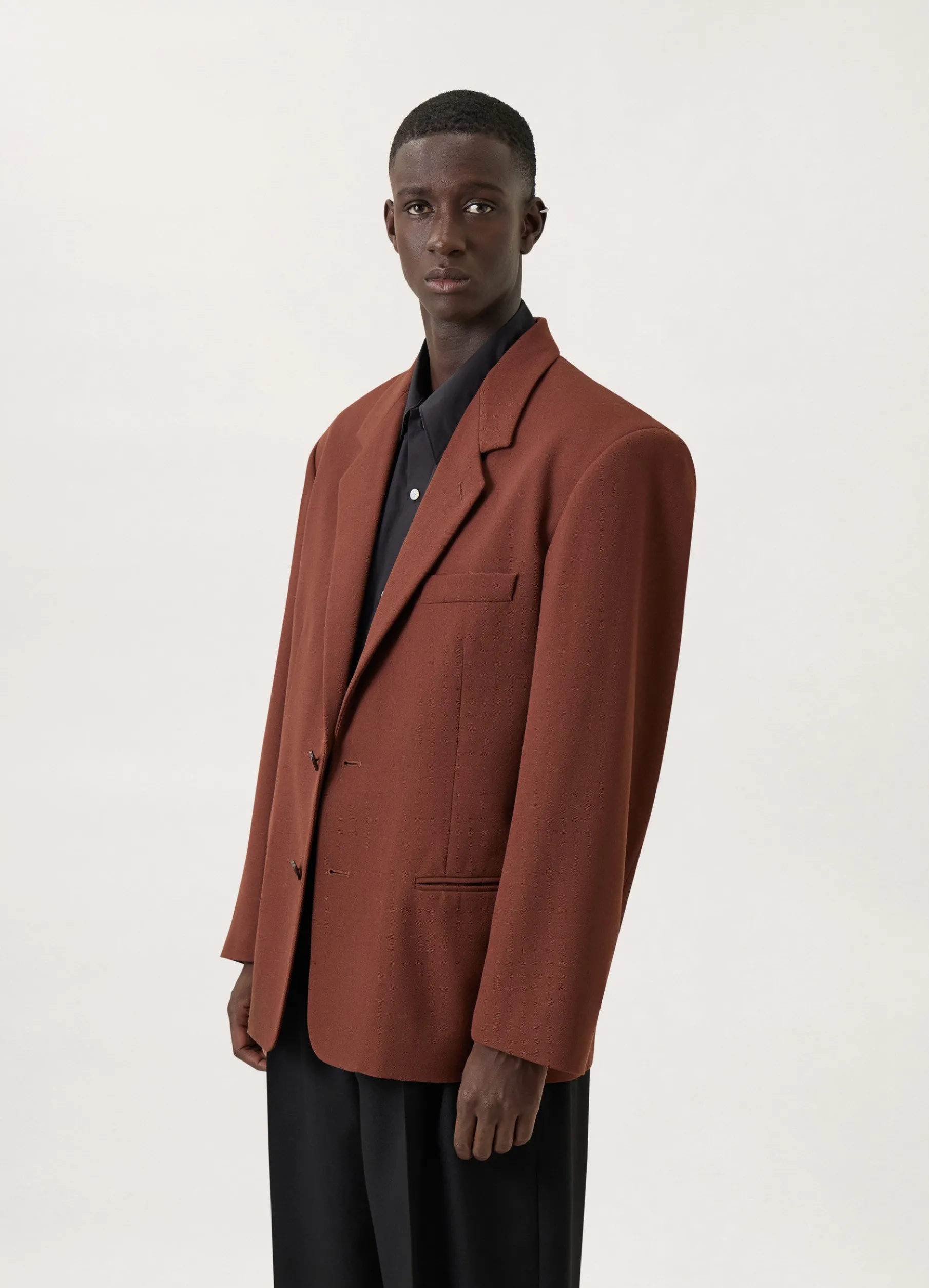 This Jacket Is Made Of Wool Gabardine With A Soft Hand And A Fluid Drape. Its Tailored Construction Has A Boxy Fit Accentuated By Long Shoulders And A Convertible Notched Lapel. This Piece Has A Two Button Closure, A Slanted Chest Welt Pocket, Two Jetted Pockets, And Is Fully Lined In Cotton.