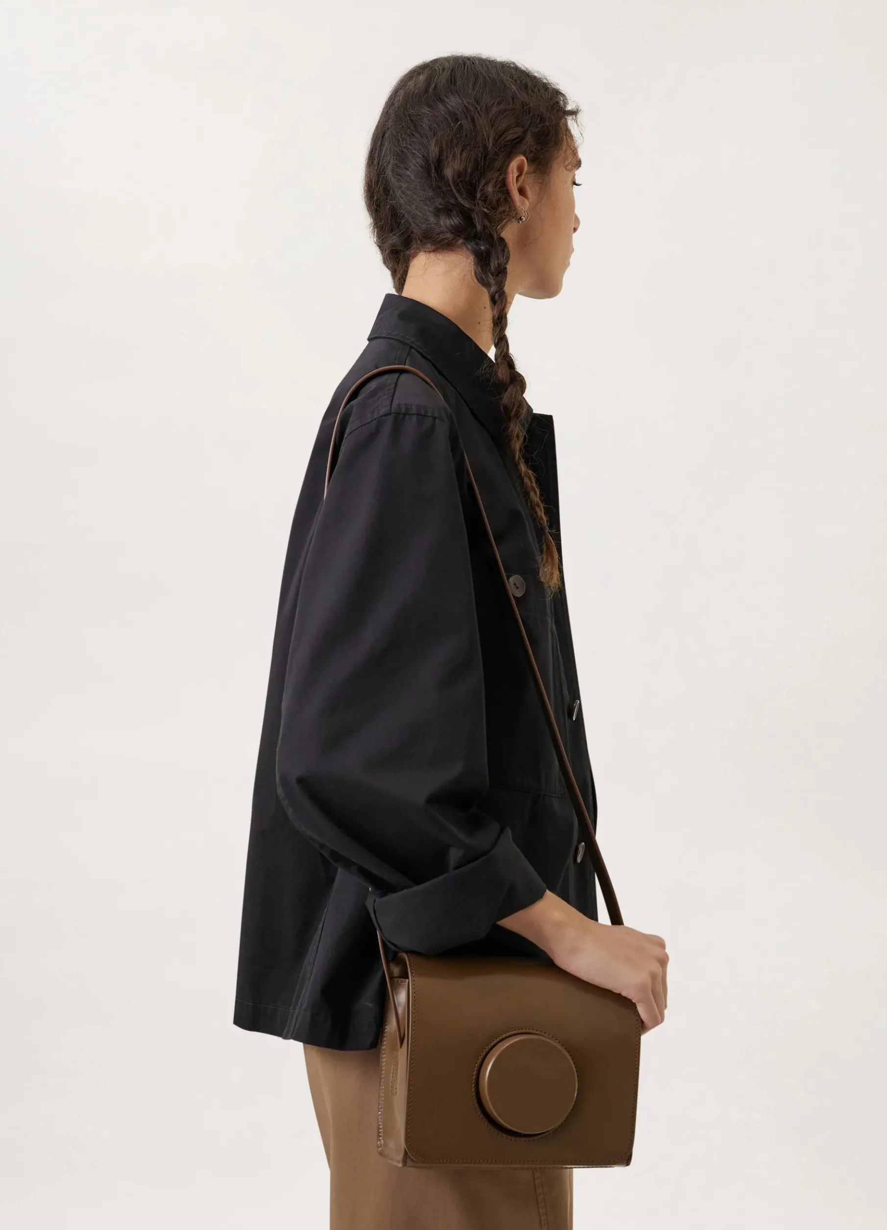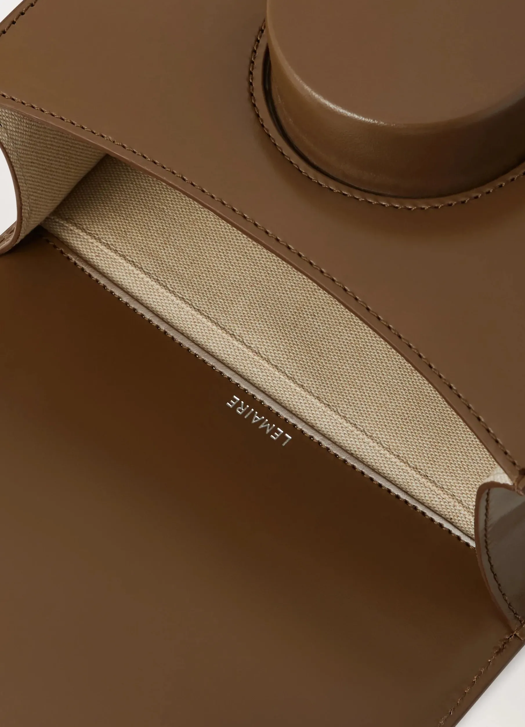 This Bag Is A Lemaire Classic. Inspired By Traditional Camera Bags, It Is Made Of Vegetabletanned Leather With A Compact Grain And A Smooth Finish. Its Lensshaped Closure Is Entirely Handmolded. Its Details Include A Cotton Canvas Lining With A Patch Pocket And An Adjustable Shoulder Strap Which Can Be Worn As A Crossbody.