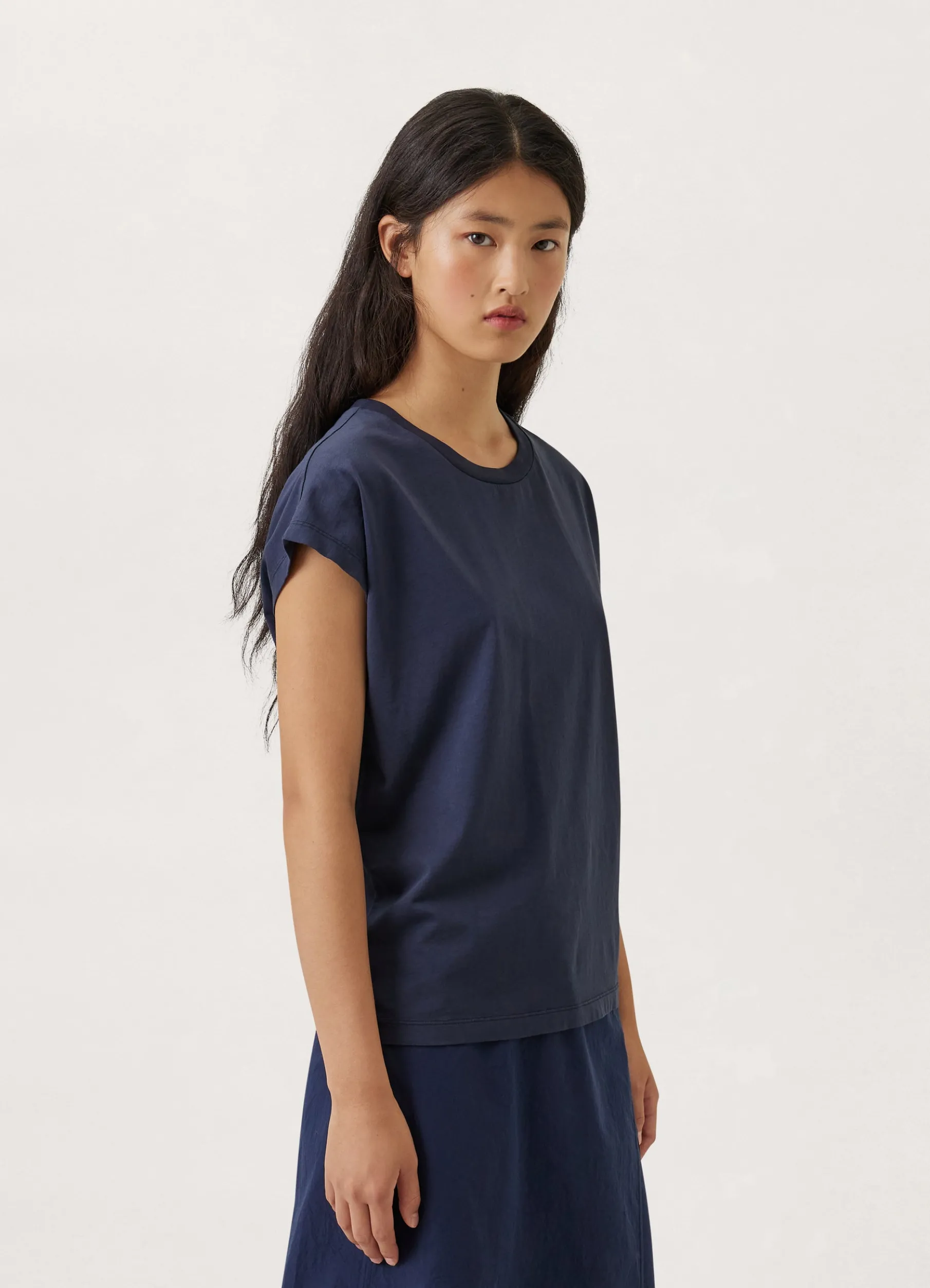 This Tshirt Is Made Of A Soft, Washed Jersey That Is Pigmented With Natural Dye. Its Fit Is Relaxed And Slightly Narrower At The Hem To Rest On The Hips. It Features An Open Crewneck With A Ribbed Collar And Cap Sleeves.