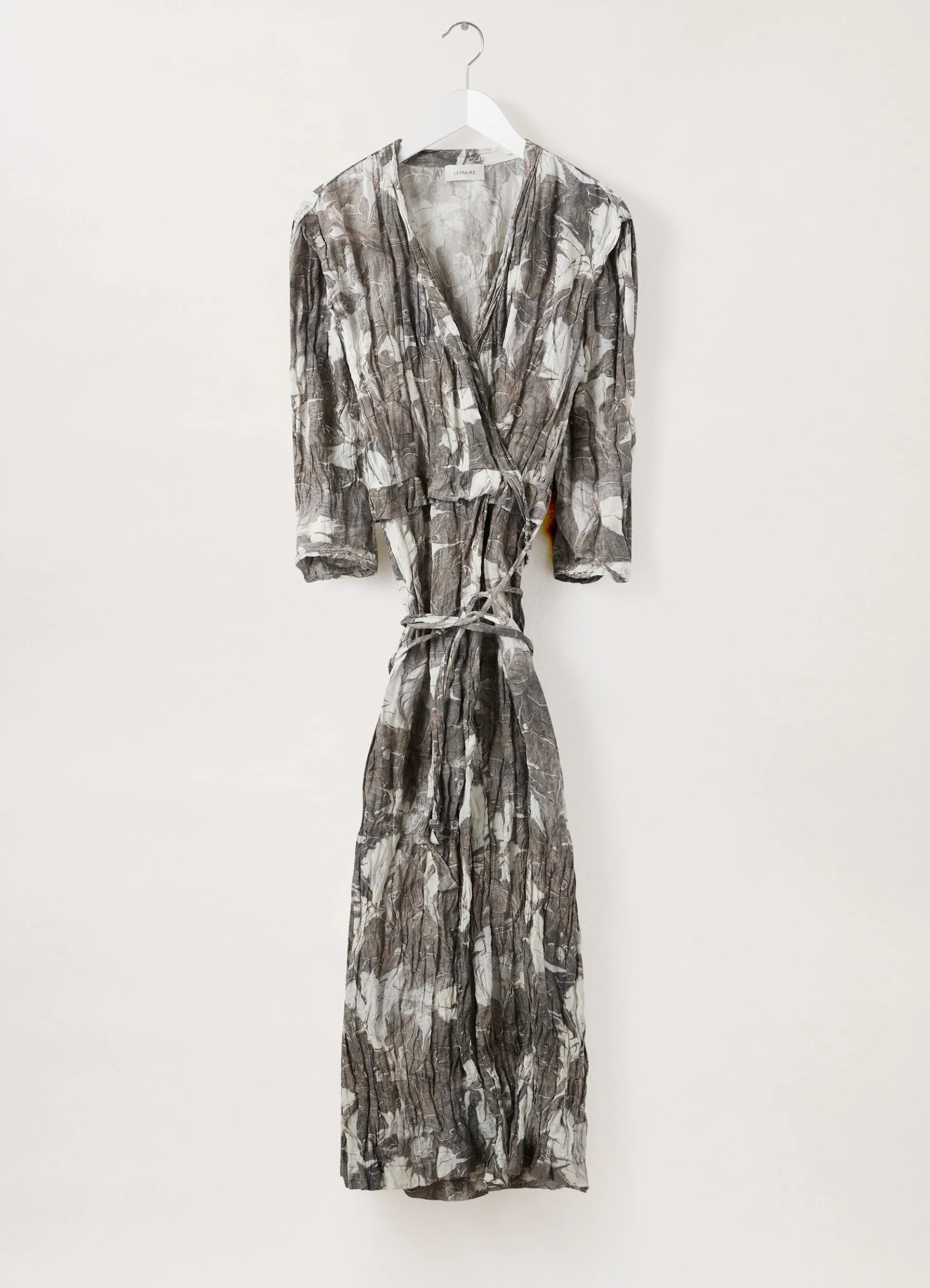 This Dress Is Made Of A Printed Silkviscose Blend That Has Been Woven With Metal Yarn, Giving It A Permanently Crinkled Texture. Its Wrapover Shape Features A Plunging Neckline, Boxpleated Shoulders, And Sleeves Cut To Midforearm. A Small Peplum Highlights Its Waistline, A Thin Belt Wrapping Around The Waist.
