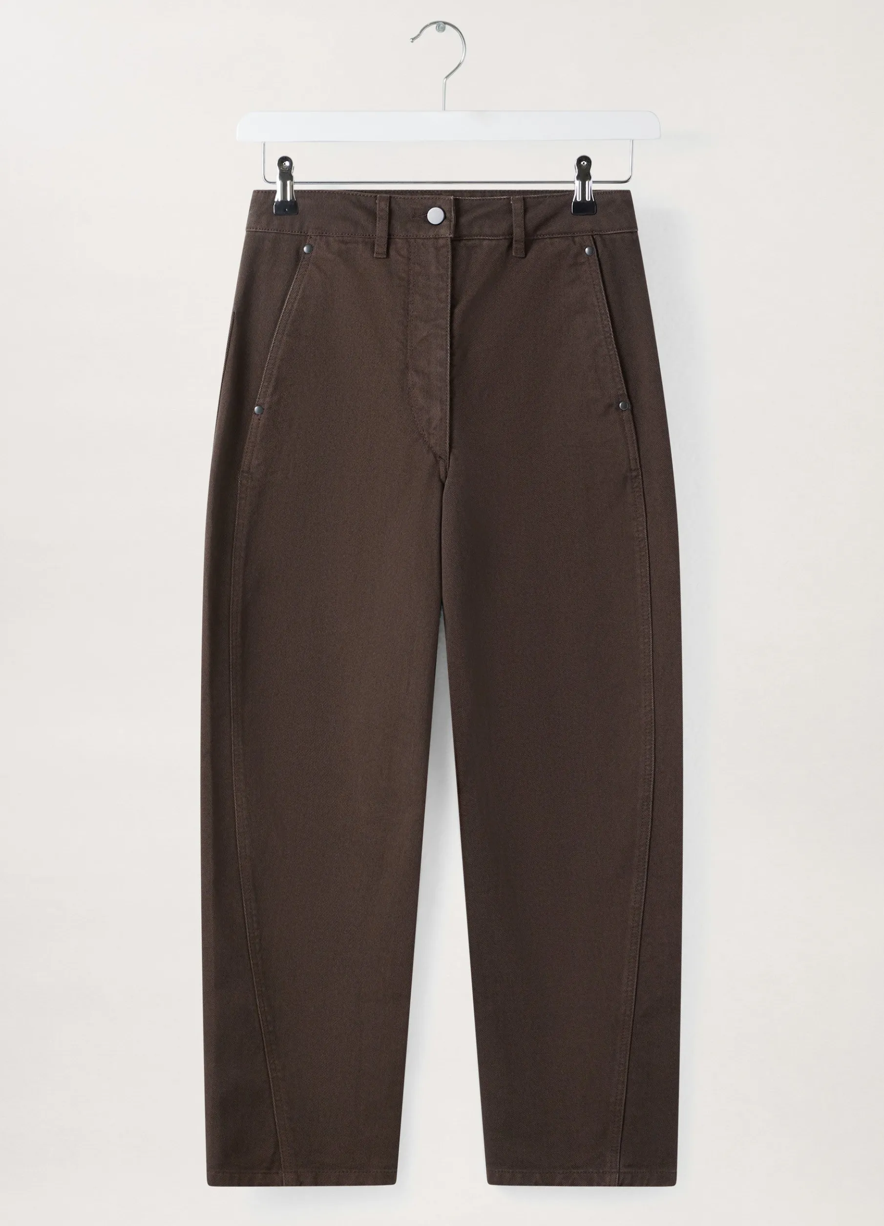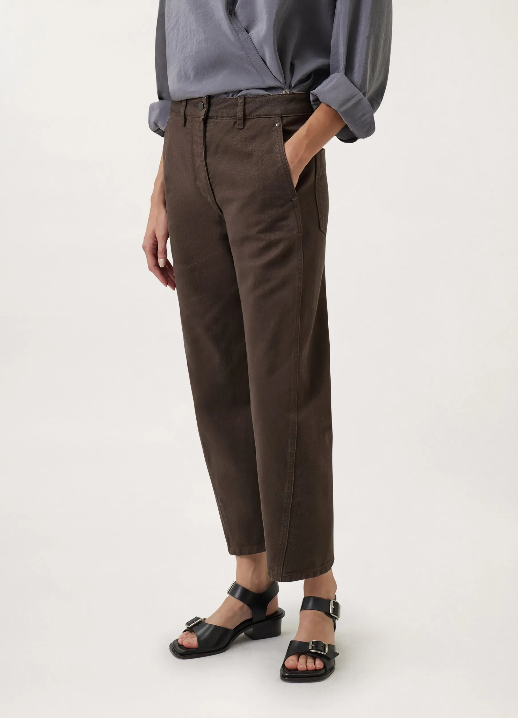 These Pants Are Made Of A Heavy Garmentdyed Denim, With A Thick, Round Hand. The Key Features Of These Classic Lemaire Pants Include Five Pockets And Twisted Side Seams, Giving A Slightly Curved Volume To The Leg. Their Cut Is Straight And Finished With Workwear Details.