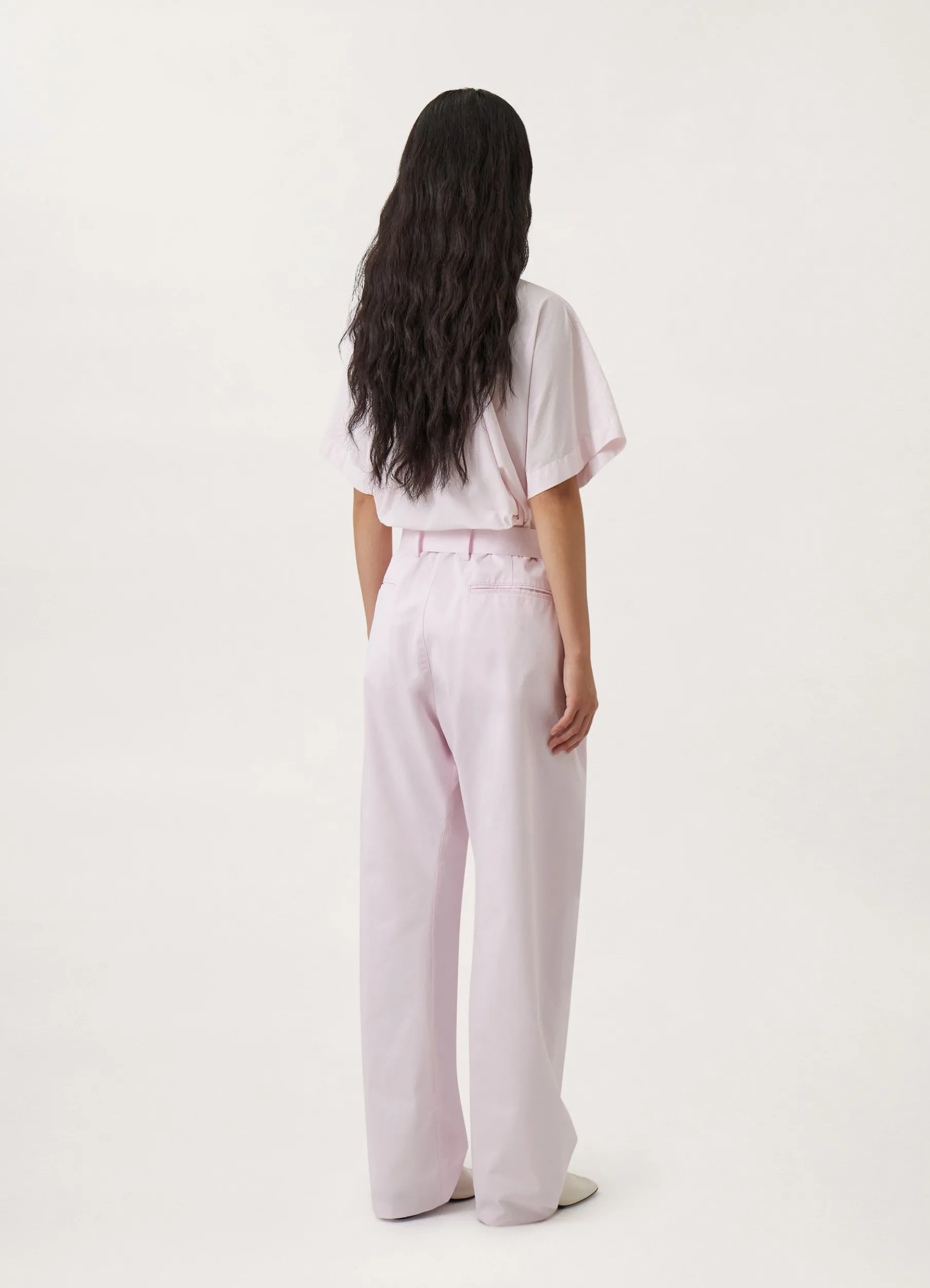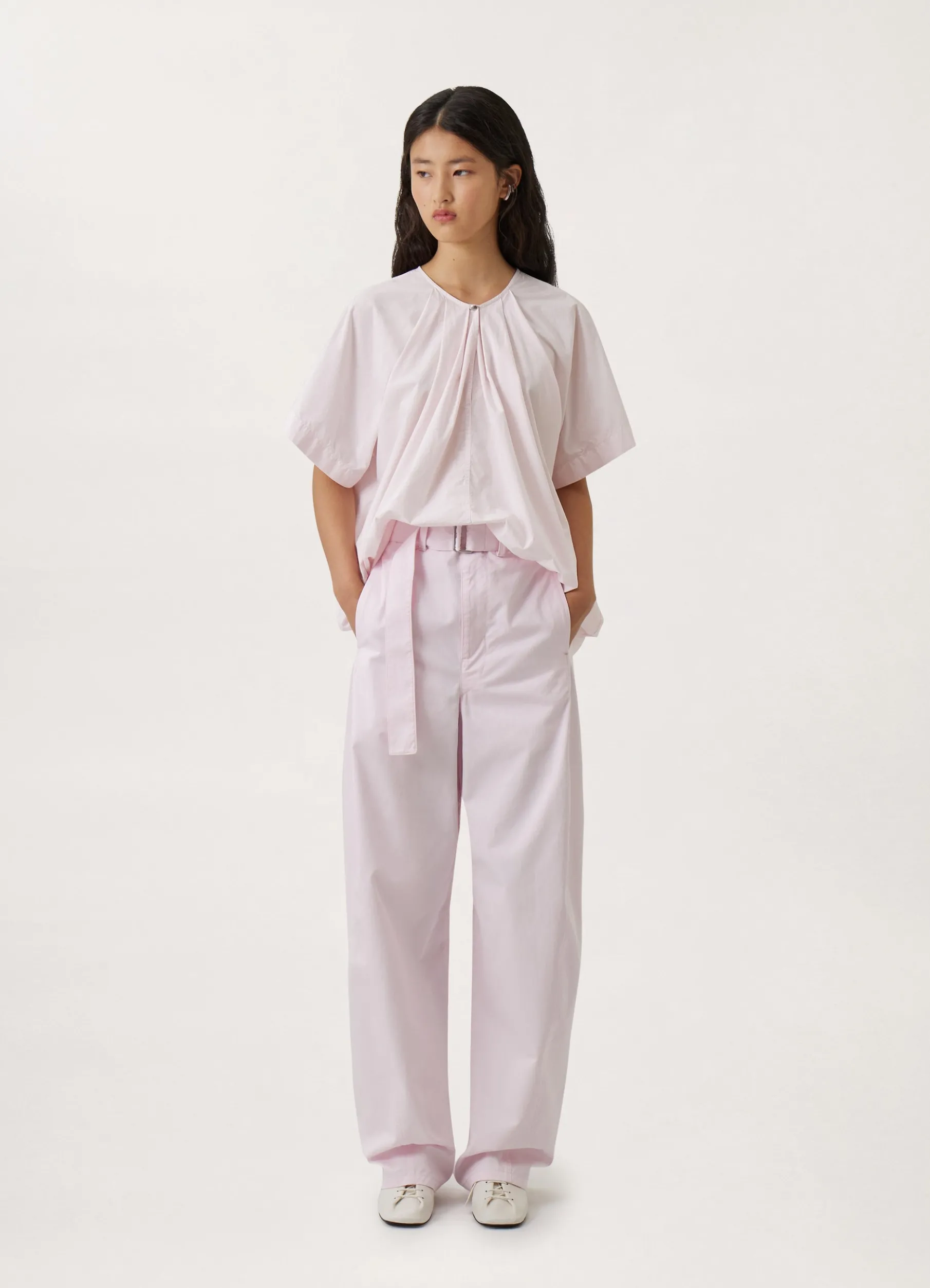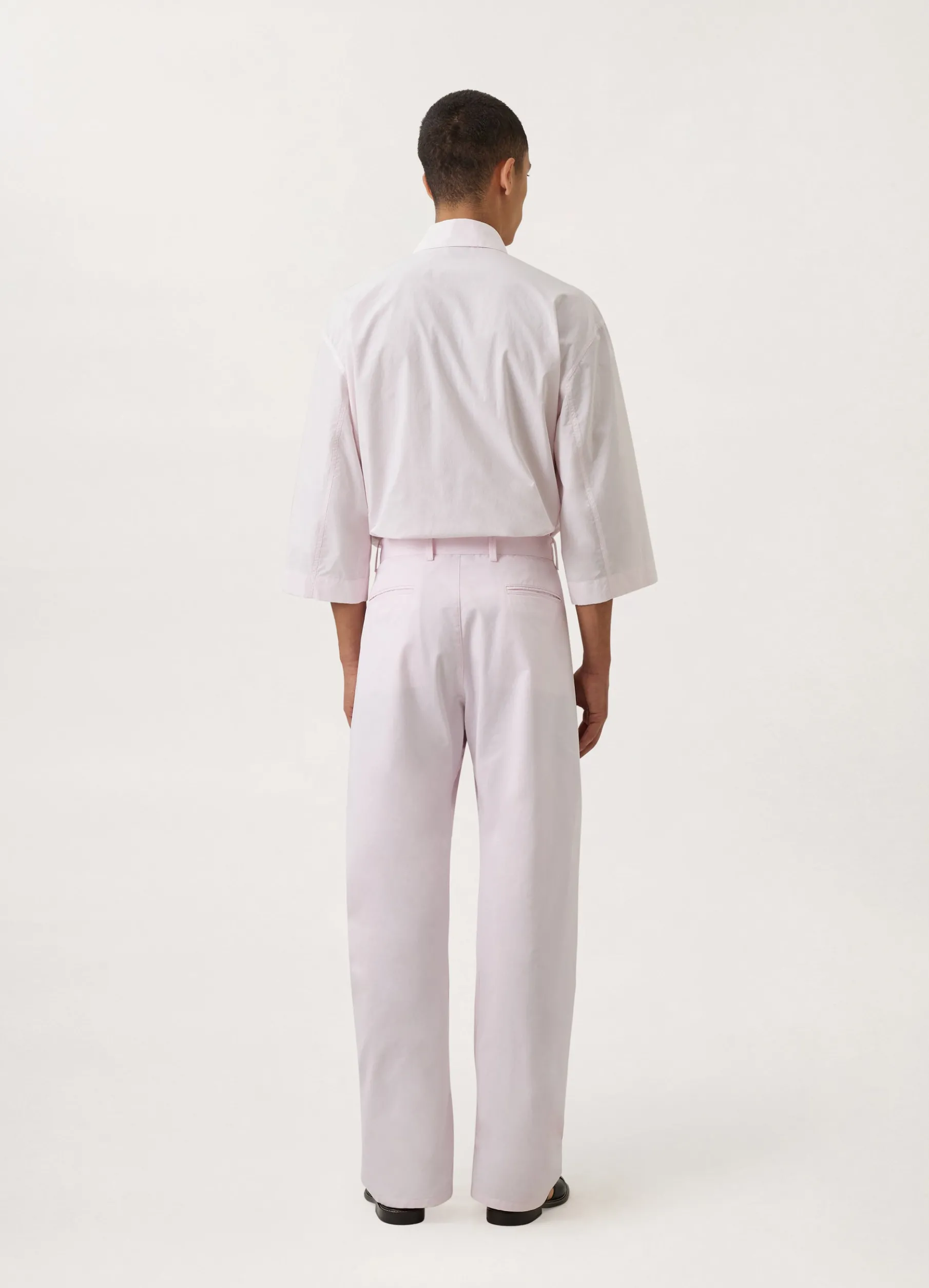 A New Addition To The Lemaire Twisted Family, These Unisex Pants Are Made From A Lightweight Cotton With A Visible Twill Weave. Their Sideseams Are Slightly Twisted Giving The Leg A Curved Shape. Details Include Two Side Pockets, A Jetted Pocket On The Back And Simple Topstitching. The Fit Is Elongated And Midrise, And Includes A Belt With Squared Edges To Adjust The Waist.