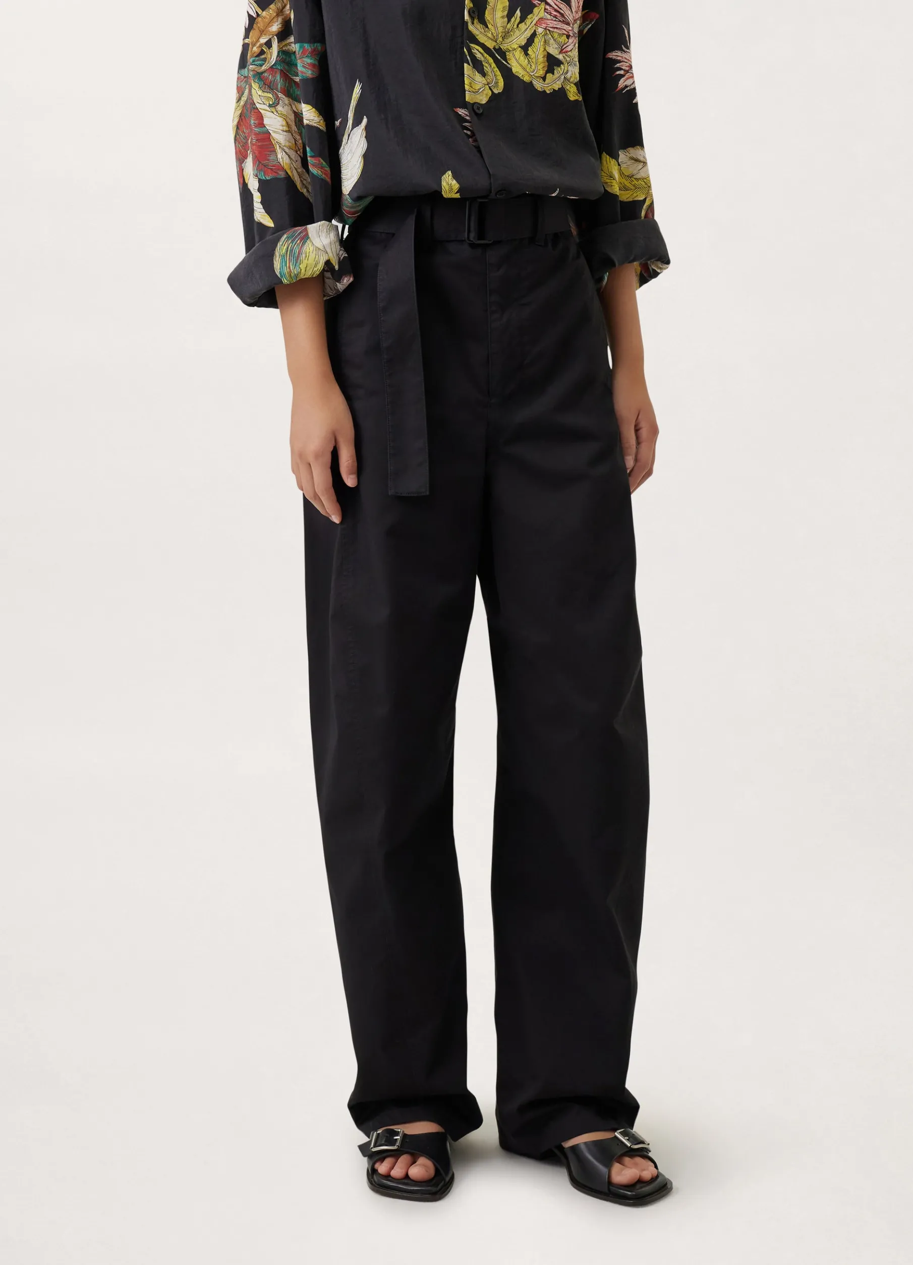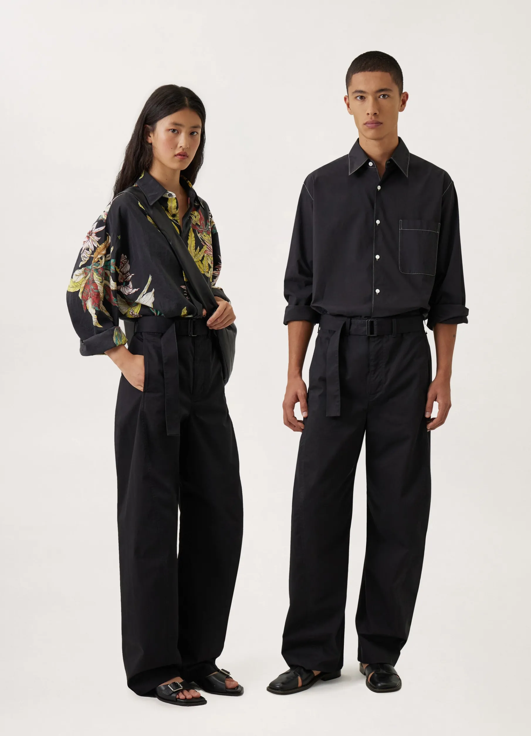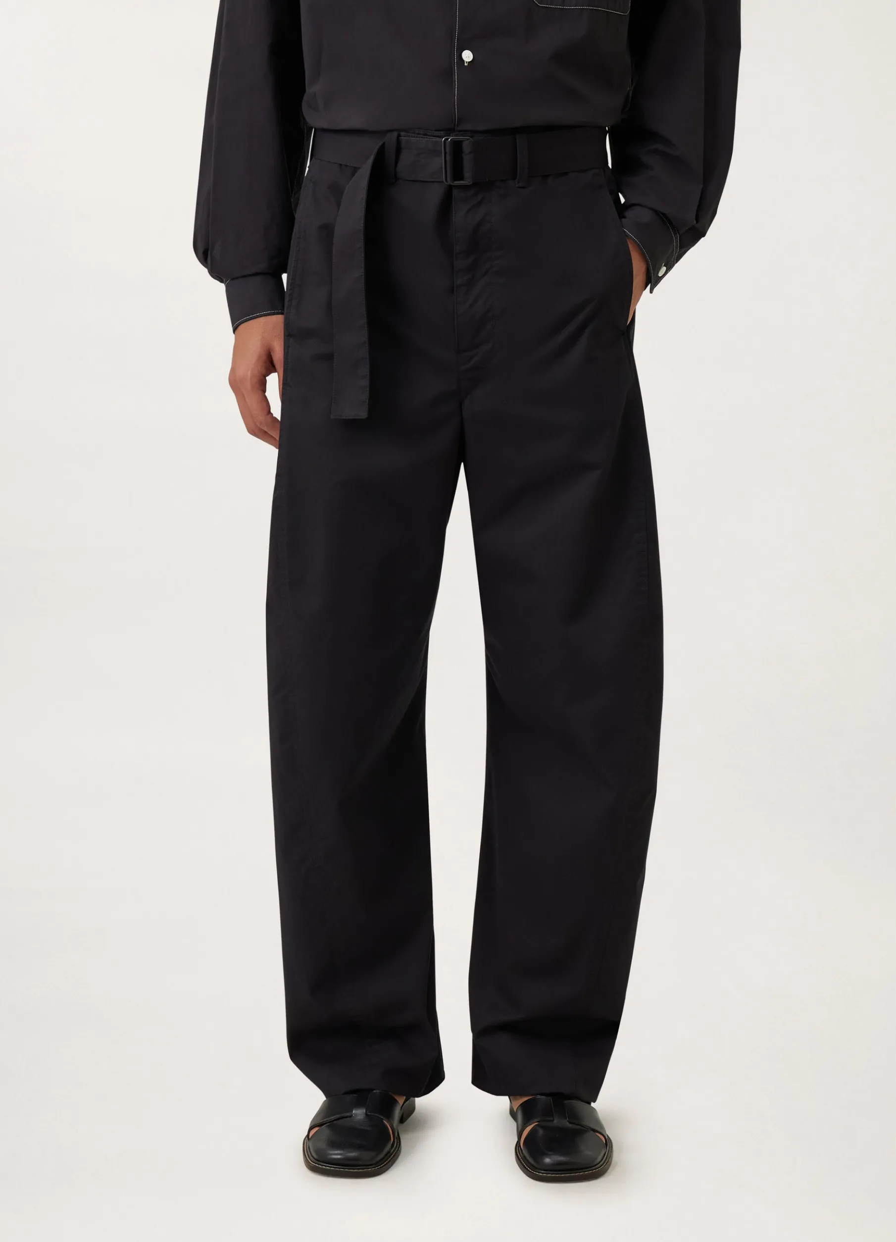 A New Addition To The Lemaire Twisted Family, These Unisex Pants Are Made From A Lightweight Cotton With A Visible Twill Weave. Their Sideseams Are Slightly Twisted Giving The Leg A Curved Shape. Details Include Two Side Pockets, A Jetted Pocket On The Back And Simple Topstitching. The Fit Is Elongated And Midrise, And Includes A Belt With Squared Edges To Adjust The Waist.
