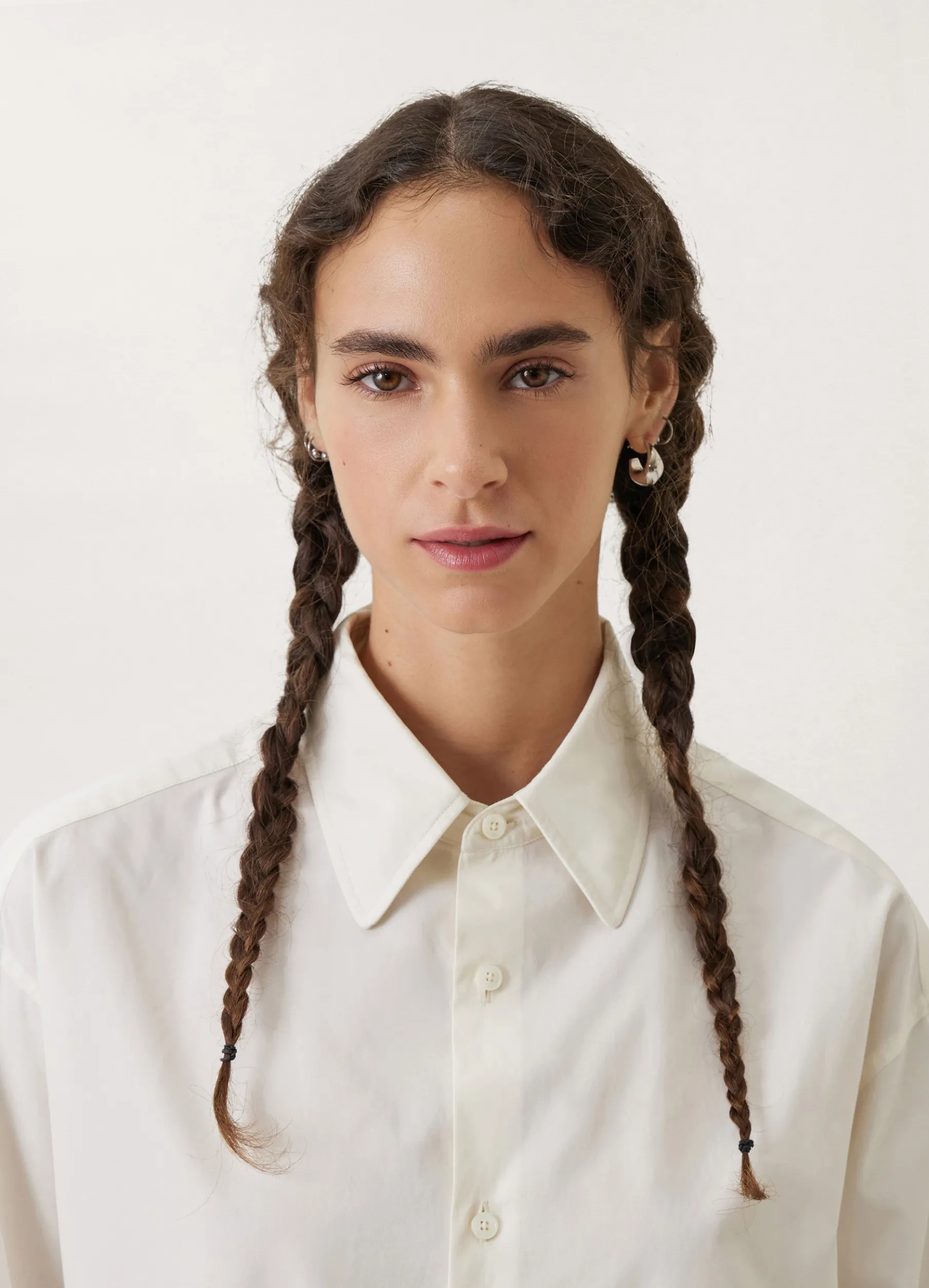 This Shirt Is Made Of Heavy Poplin Woven From Organic Cotton Yarn, With A Smooth Surface And A Compact Feel. It Has A Relaxed, Elongated Fit, With A Pointed Collar And A French Placket. Other Details Include Adjustable Angled Cuffs And A Rounded Hem.
