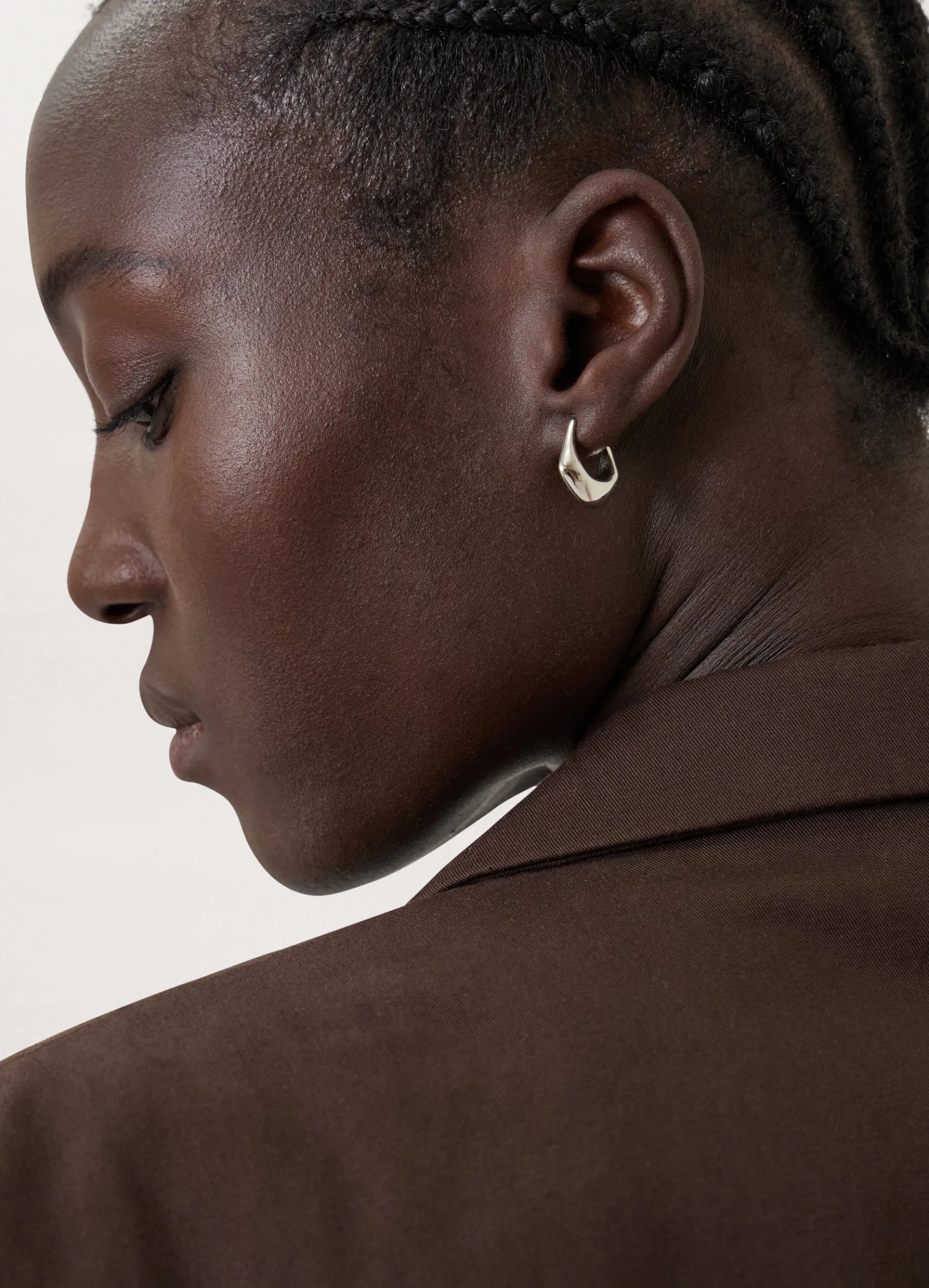 This Unisex Earring Is Made Of Bronze With A Gold Or Silver Finish And Is Shaped Like A Tiny Drop With Slightly Angular Edges.