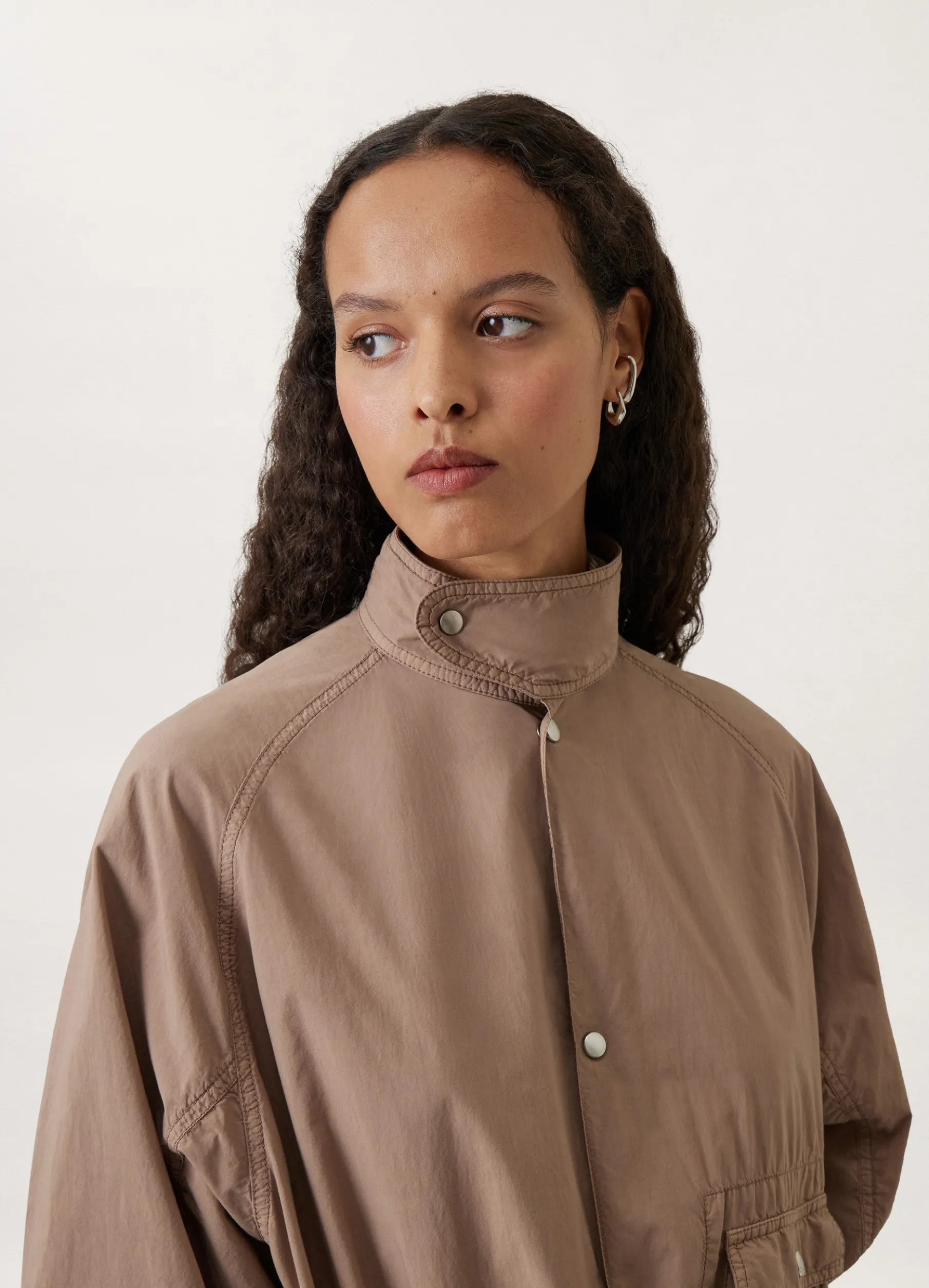 This Dress Is Made Of Airy Cotton That Has Been Garment Dyed, Softening Its Hand. Its Rounded Volume Is Slightly Tapered At The Hem And Features A Stand Collar, Dropped Shoulders And Wide Raglan Sleeves. Military Inspired Details Include A Gusseted And Reinforced Pocket And A Thin Selffabric Belt To Tie In The Waistline.