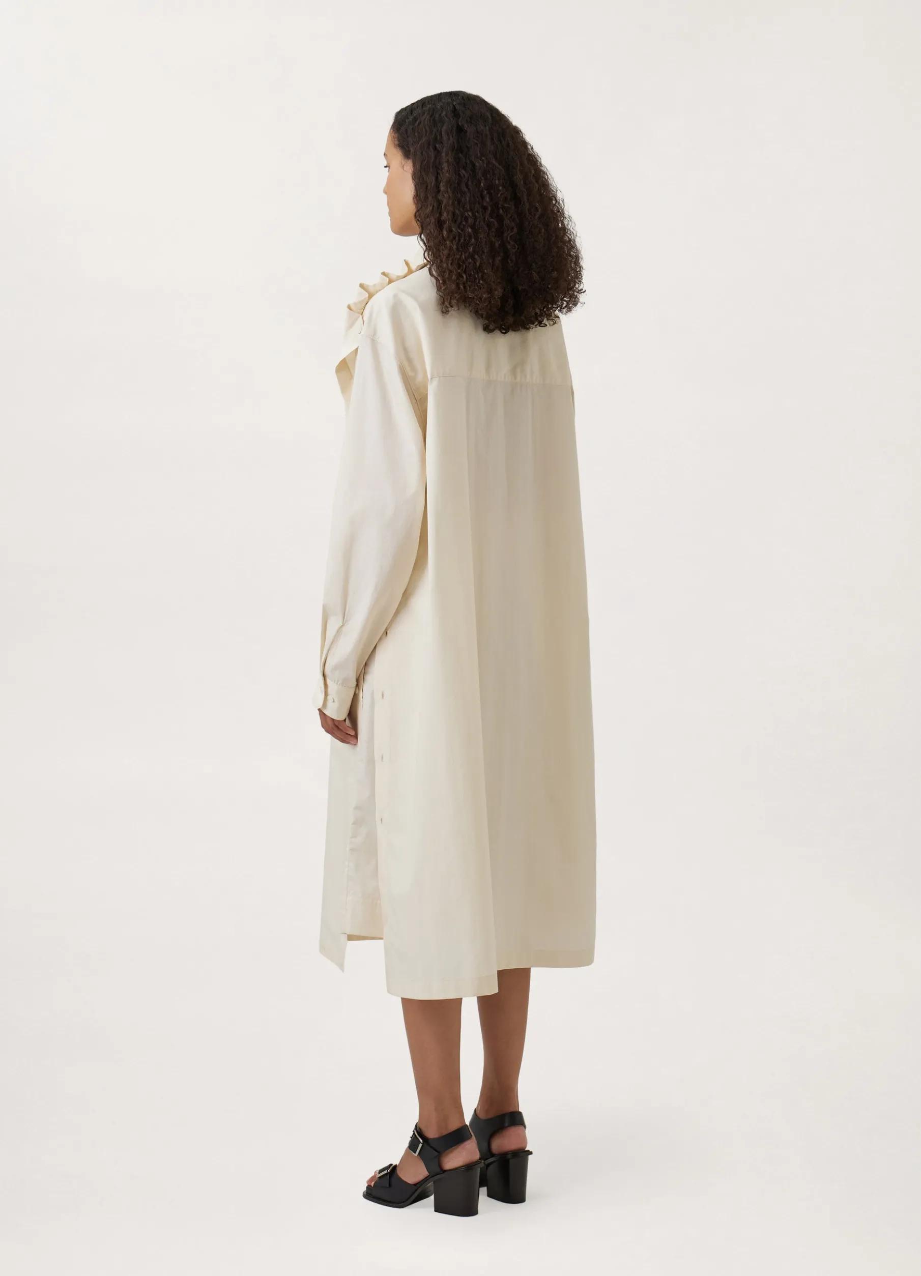 This Dress Is Made Of A Cotton Poplin That Is Lightweight With A Satinlike Finish. This Ultraconvertible Style Is Built Off A Straight, Loose Shirt. Its Deconstructed Fit Features Fully Slit Sides, Buttons Along The Shoulder And Side Seams Allowing Either Front Panel To Bewrapped Over The Otheror Draped Over One Shoulderto Create An Asymmetric Volume.