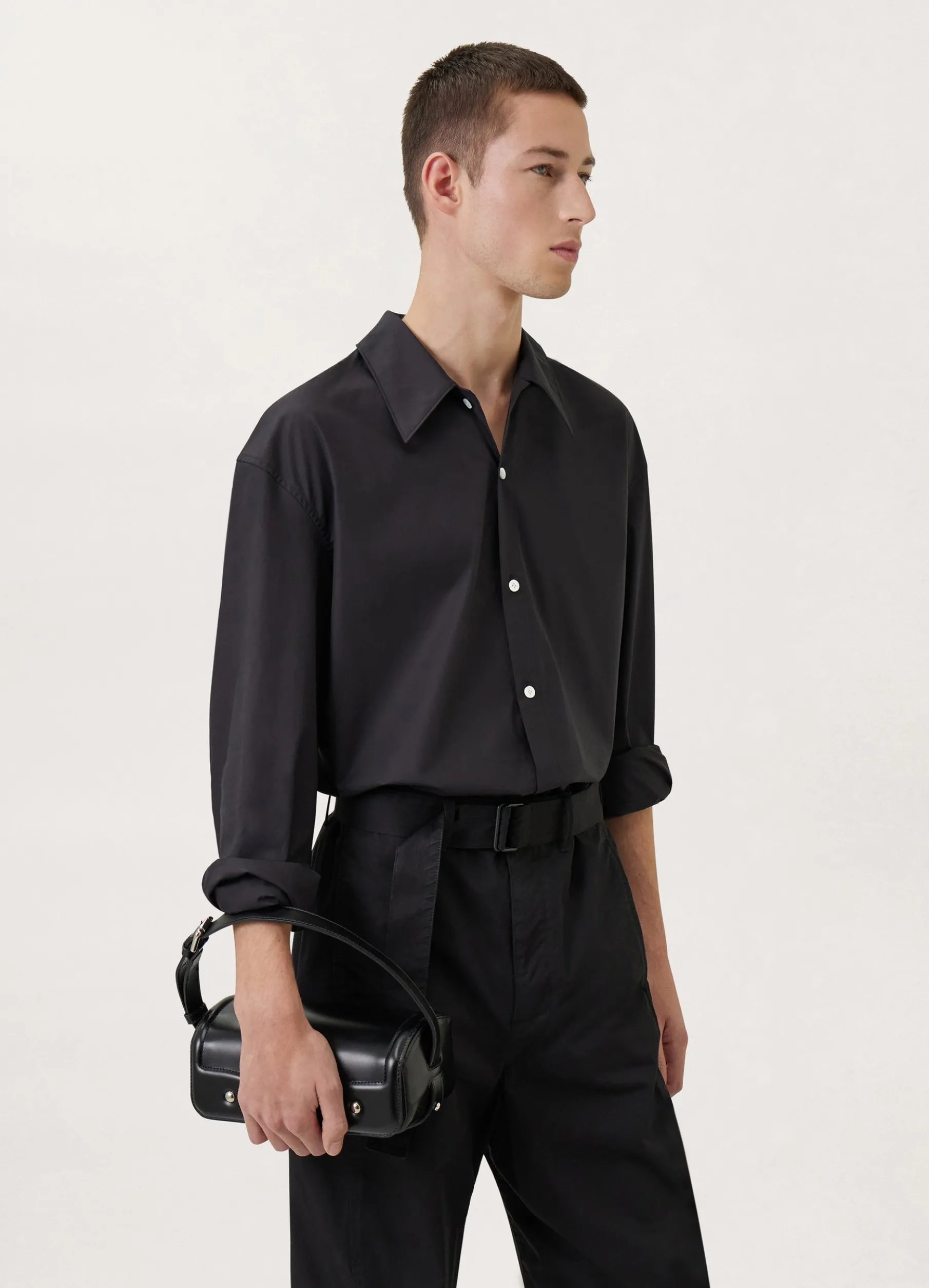 This Structured Handbag Is Made Of Highshine Vegetabletanned Leather With A Glossy Finish. Inspired By School Children’s Backpacks, Its Wide Rectangular Body Closes With A Flap That Is Embossed And Stitched Around Its Border, With A Silver Studded Metallic Closure. It Features A Hybrid Strap That Encircles The Entirety Of The Bag, Able To Be Worn On The Shoulder Or Held As A Clutch.