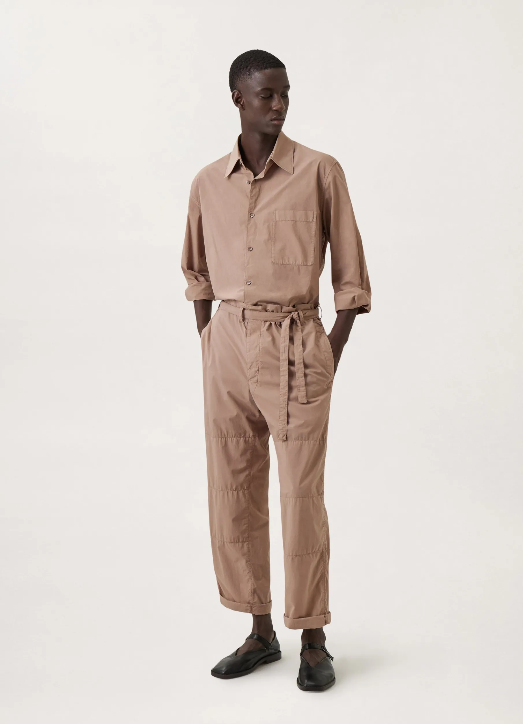 This Unisex Shirt Is Made Of Compact Cotton, Woven Into A Waterrepellent Twill That Is Soft And Malleable. It Has A Straight Fit With A Soft Construction Accented By Its Convertible Collar, French Placket And Slightly Rounded Hem. A Single Chest Patch Pocket, Adjustable Angled Cuffs With Double Pleats And A Back Yoke Complete Its Classic Details.