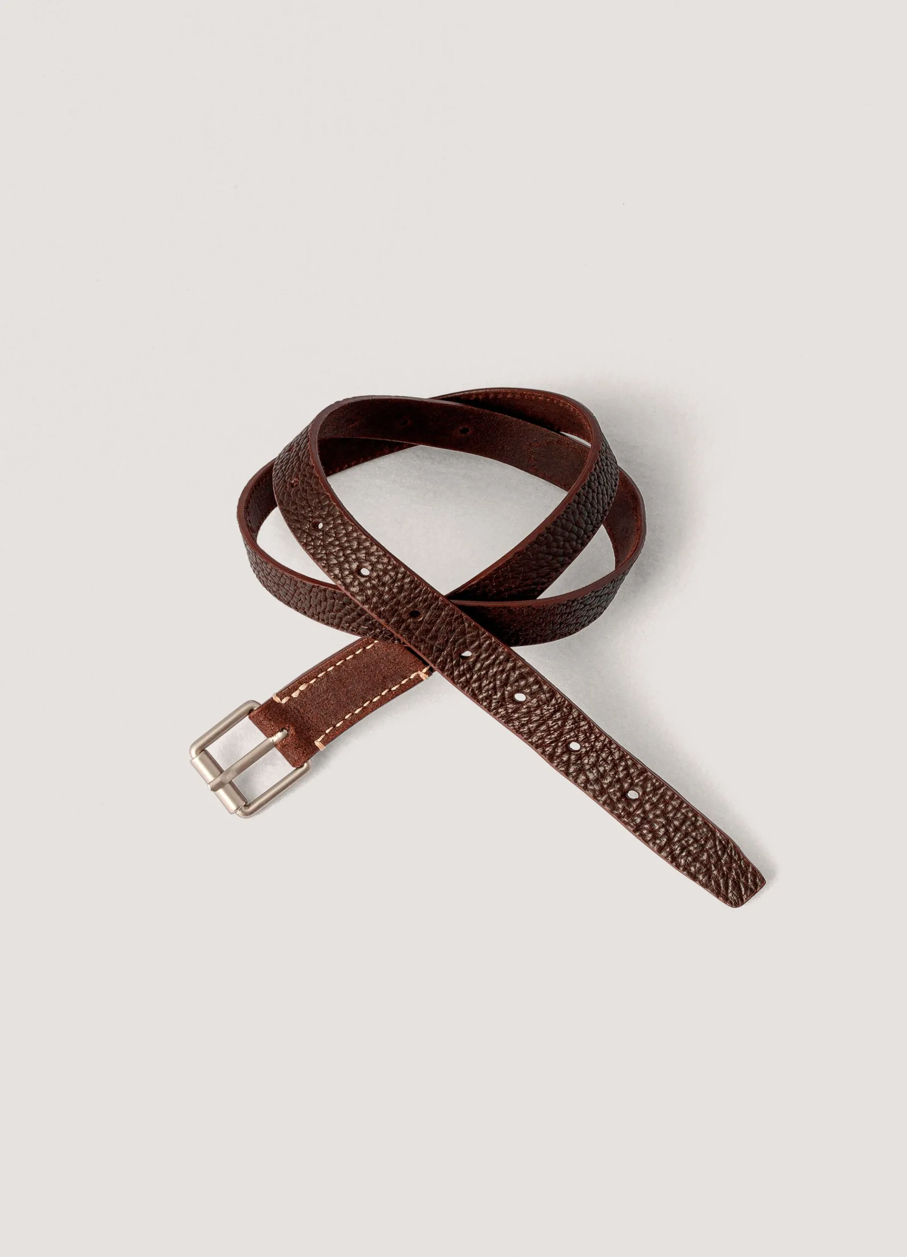 This Thin Belt Is Made Of A Thick Grained Vegetable-Tanned Leather With A Compact Grain. Its Reverse Is Hand-Stitched With A Contrasting Thread.