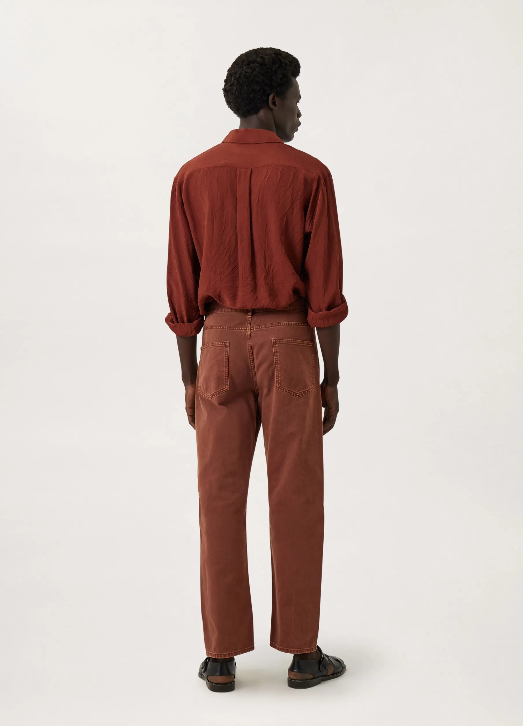 These Pants Are Made Of A Heavy Garmentdyed Denim, With A Thick, Round Hand. The Fit Is Regular And Midrise With A Tapered, Slightly Rounded Leg With No Side Seam. Deniminspired Details Include A Back Yoke, Metal Rivets And Studs And Five Pockets Including A Ticket Pocket On The Front.