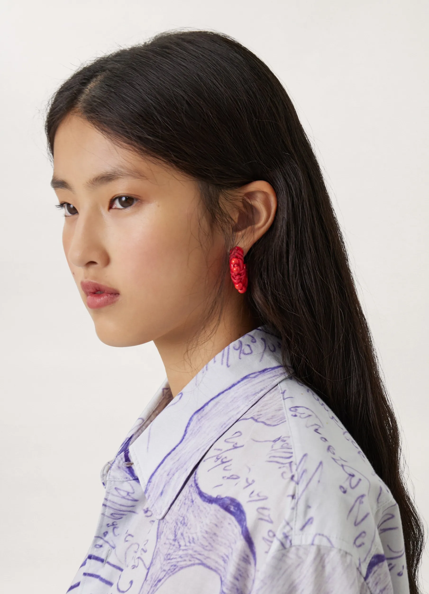 These Hoops Are Made Of Brass And Cotton Covered Tubular Cords Strung Through Lacquered Pearls, All Finished With A Lacquered Coating. Inspired By The Ancient Japanese Knottying Technique Of Shibari, They Feature Cottoncovered Cords That Are Knotted Along The Tubular Volume Of The Hoops, Delicately Sculpting Their Hollow Shape.