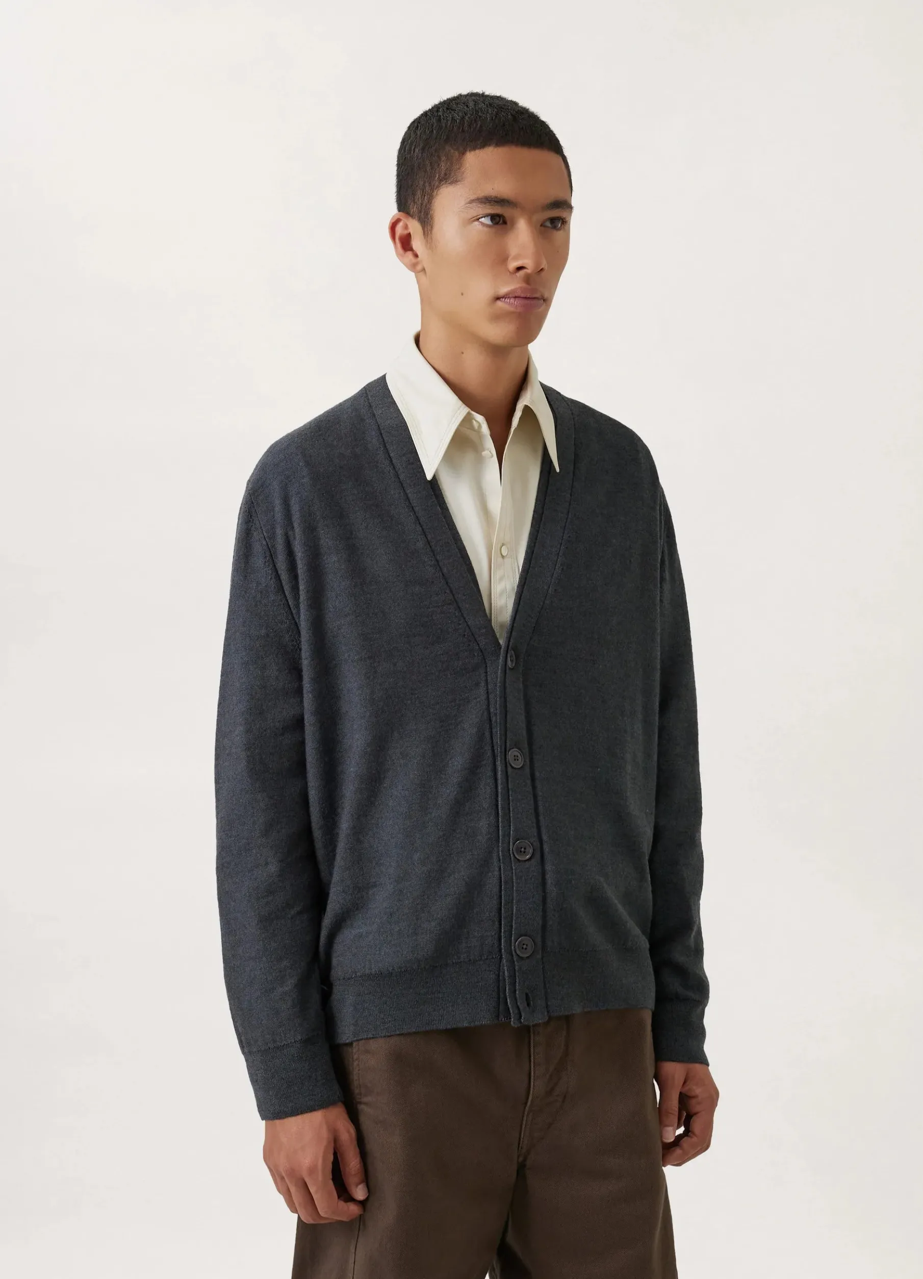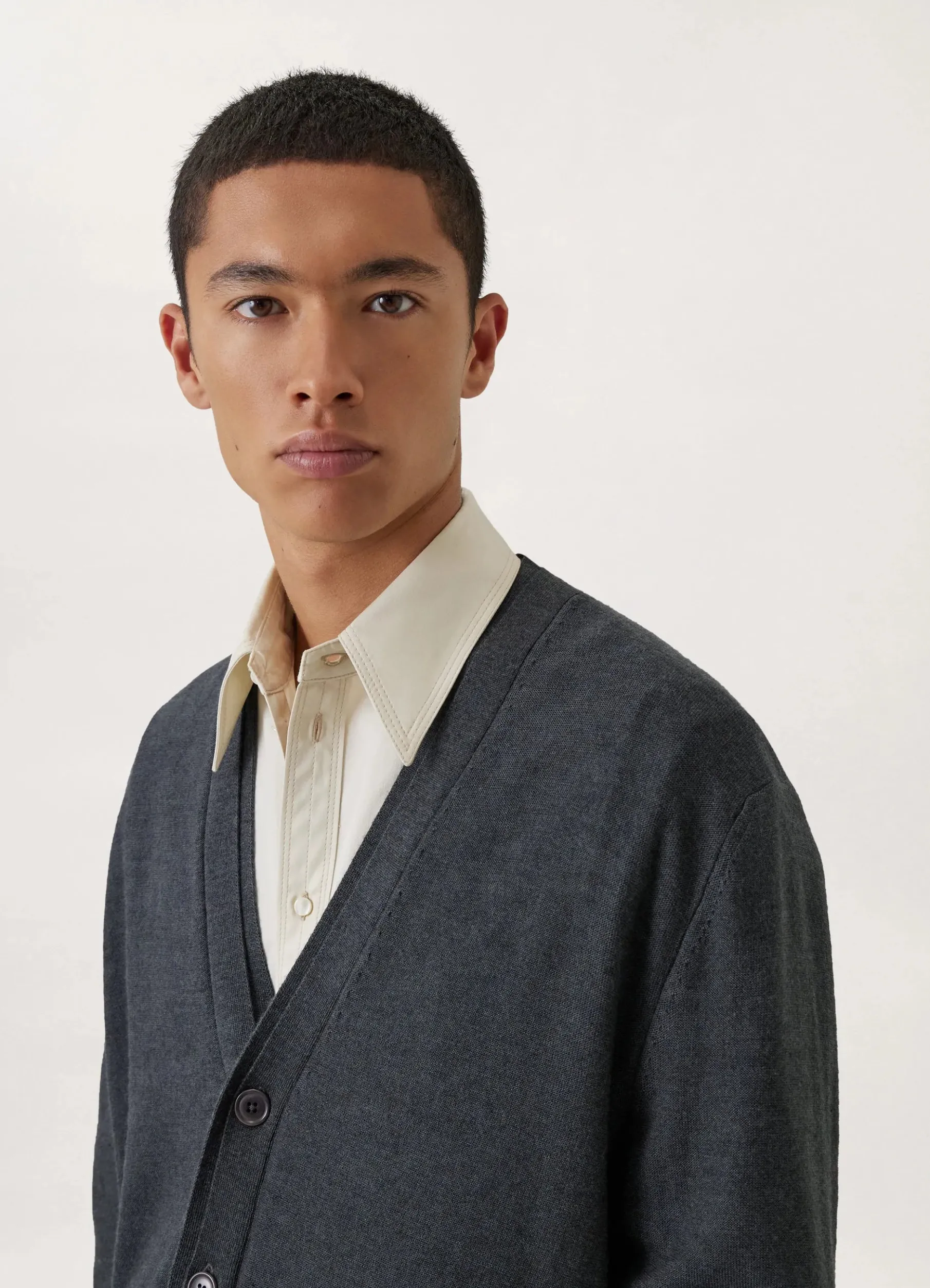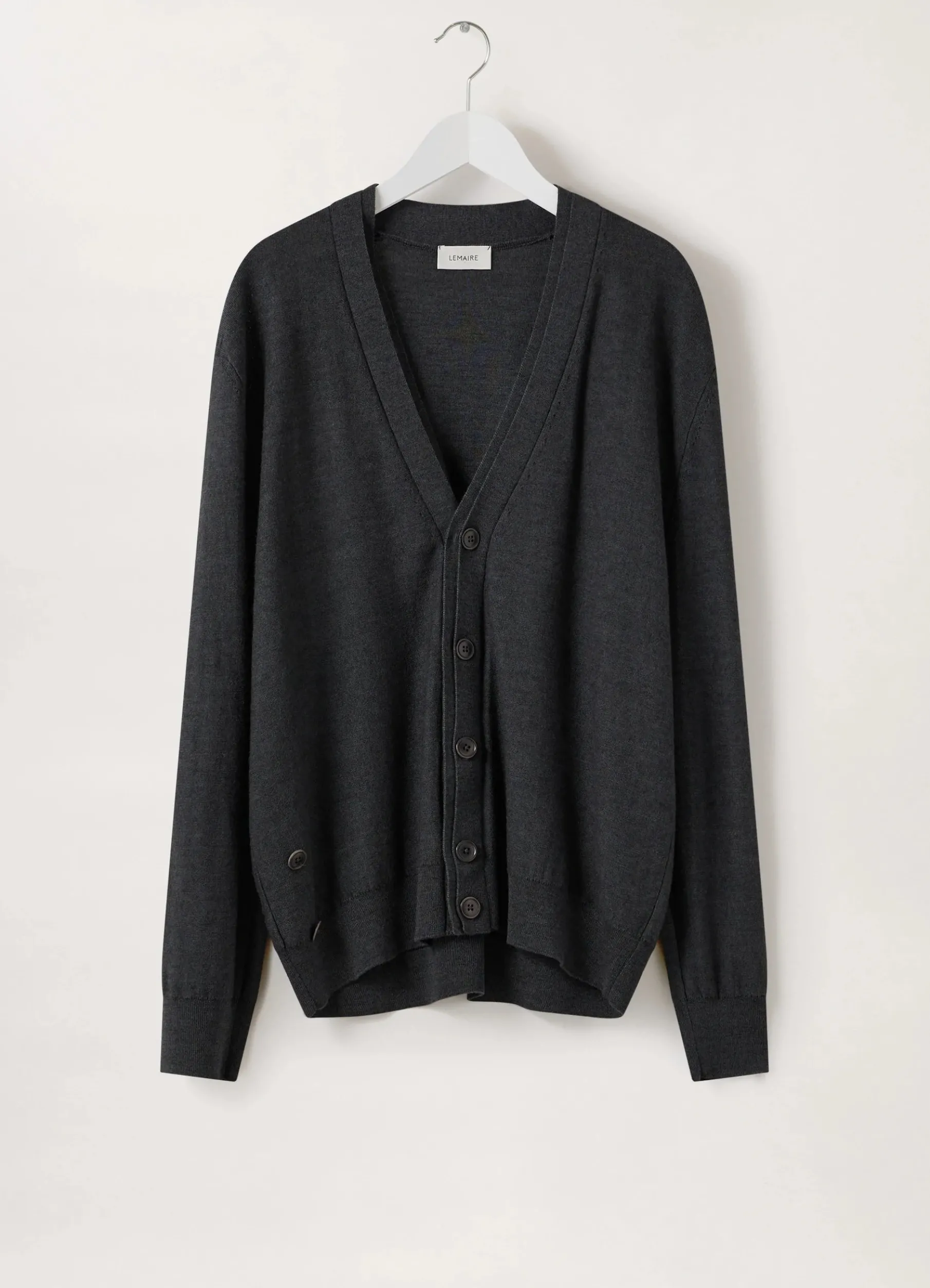 This Cardigan Is Made Of A Merino Blend With A Dry Hand And A Slightly Heathered Appearance. Based On Lemaire’s Twisted Staples, This Regular Fit Cardigan Features An Asymmetric Button Placket That Closes On The Side Seam, Wrapping Around The Waist. A Doublelayer Placket And Insideout Seams Complete Its Details.
